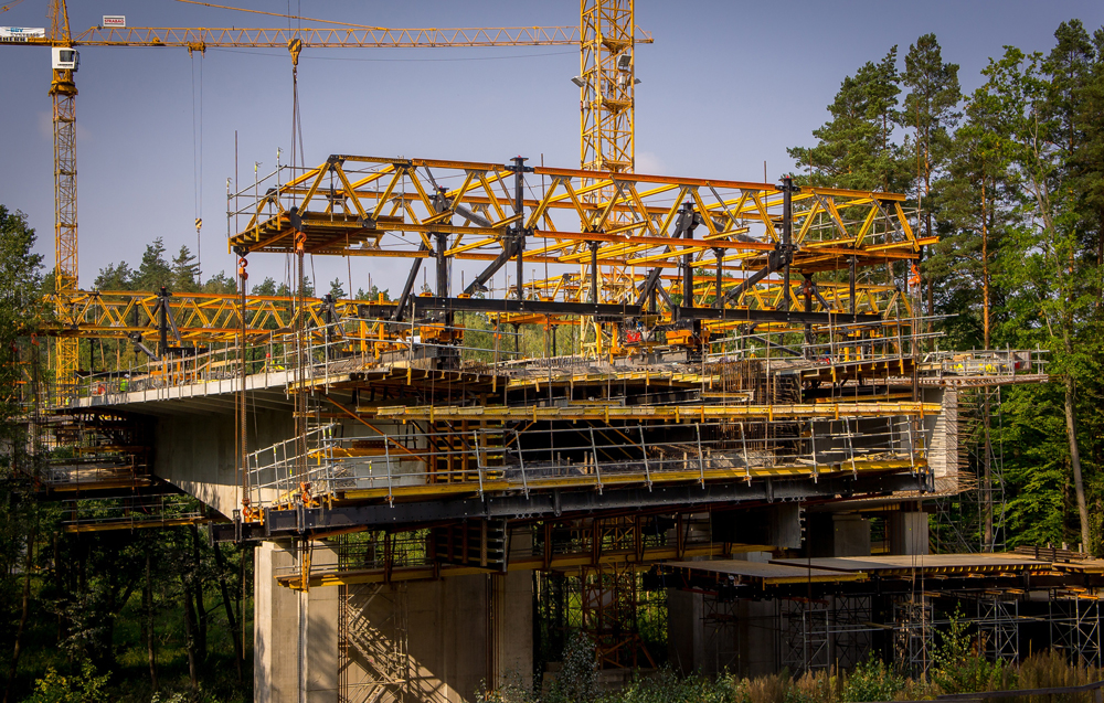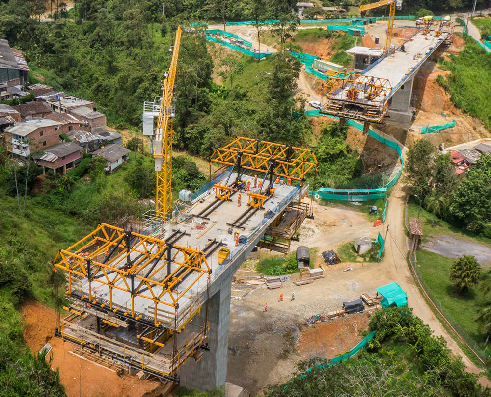 El carro de avance CVS es un sistema de encofrado para la construcción de tableros de puente en voladizo. Es ideal para la ejecución de tableros y arcos de puentes de gran luz o donde el apeo de la cimbra sobre el terreno resulte complejo.