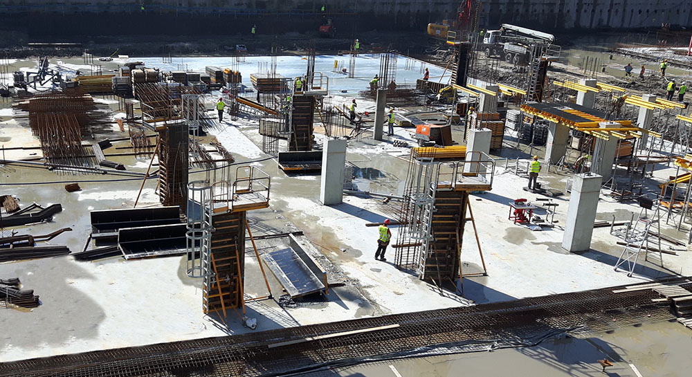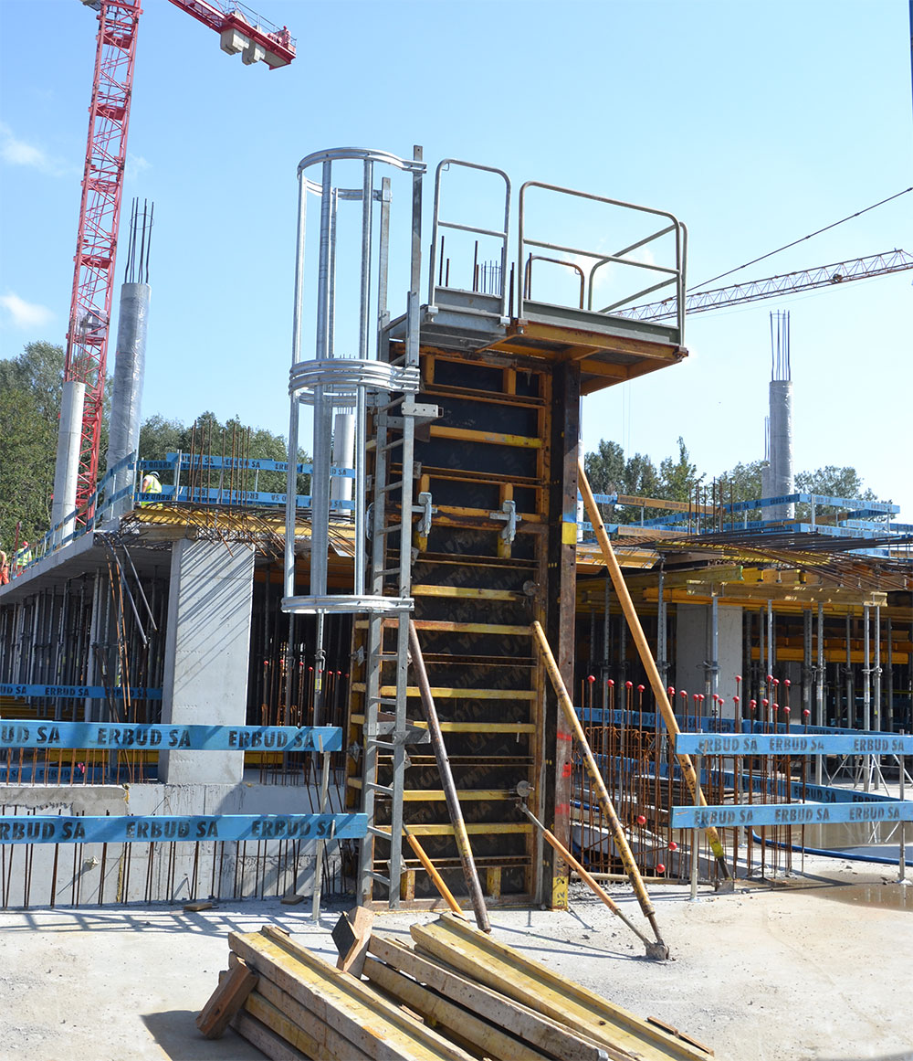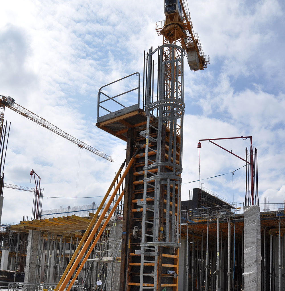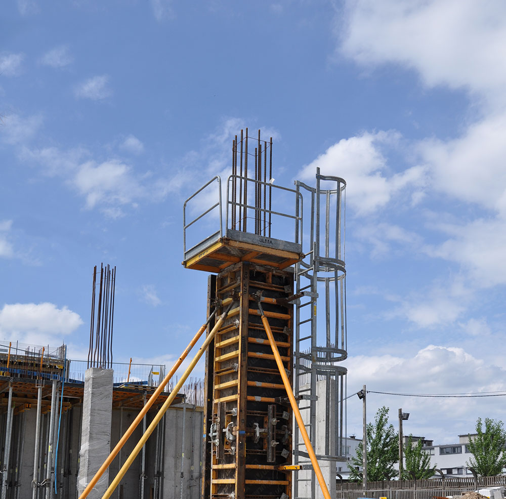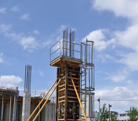 Equipo de seguridad diseñado para realizar trabajos de vaciado de concreto de columnas. El montaje del sistema se puede realizar en el suelo, lo que garantiza máxima seguridad para el operario, y se adapta a cualquier dimensión de columna. Tiene todos los elementos de seguridad y de izado incorporados a la plataforma, convirtiéndolo en un sistema rentable y seguro para la construcción de columnas.
