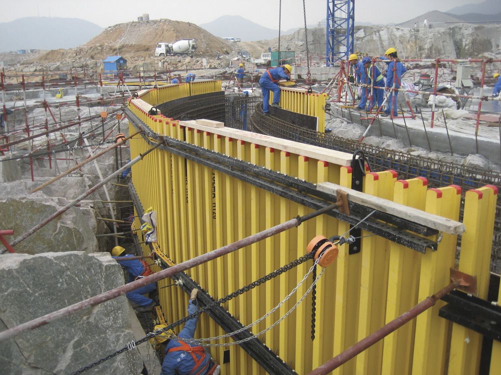 El encofrado vertical ENKOFORM VMK ejecutó la cubierta del reactor con 80 paneles: 40 en parte interior y otros tantos en la exterior, con anchuras de entre 3,7 y 4,36 m, y altura de 3,6 m.