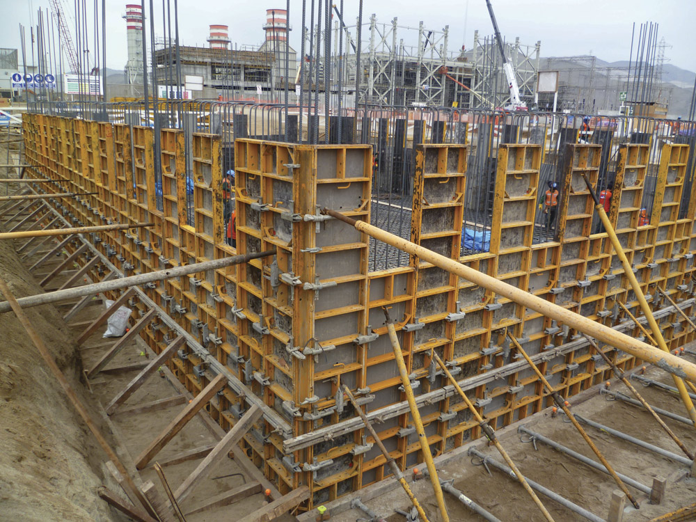 El edificio de la turbina fue la estructura más compleja del proyecto, donde columnas y vigas se revistieron con el encofrado vertical NEVI. Además, se empleó la Cimbra BRIO como apeo de las vigas peraltadas, a 12 m de altura y recubiertas con ENKOFORM HMK.