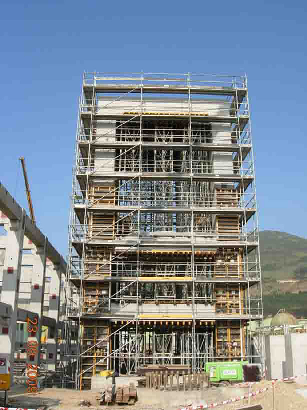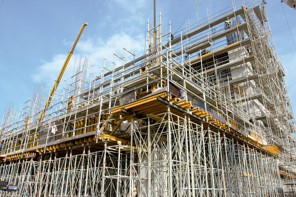Como sistema de apuntalamiento de cargas verticales y soporte del encofrado para losas ENKOFORM HMK, se utilizaron cimbras que garantizaron robustez, seguridad, así como una gran flexibilidad de utilización. De hecho, a medida que avanzó la obra, la estructura de carga creció de un piso a otro.