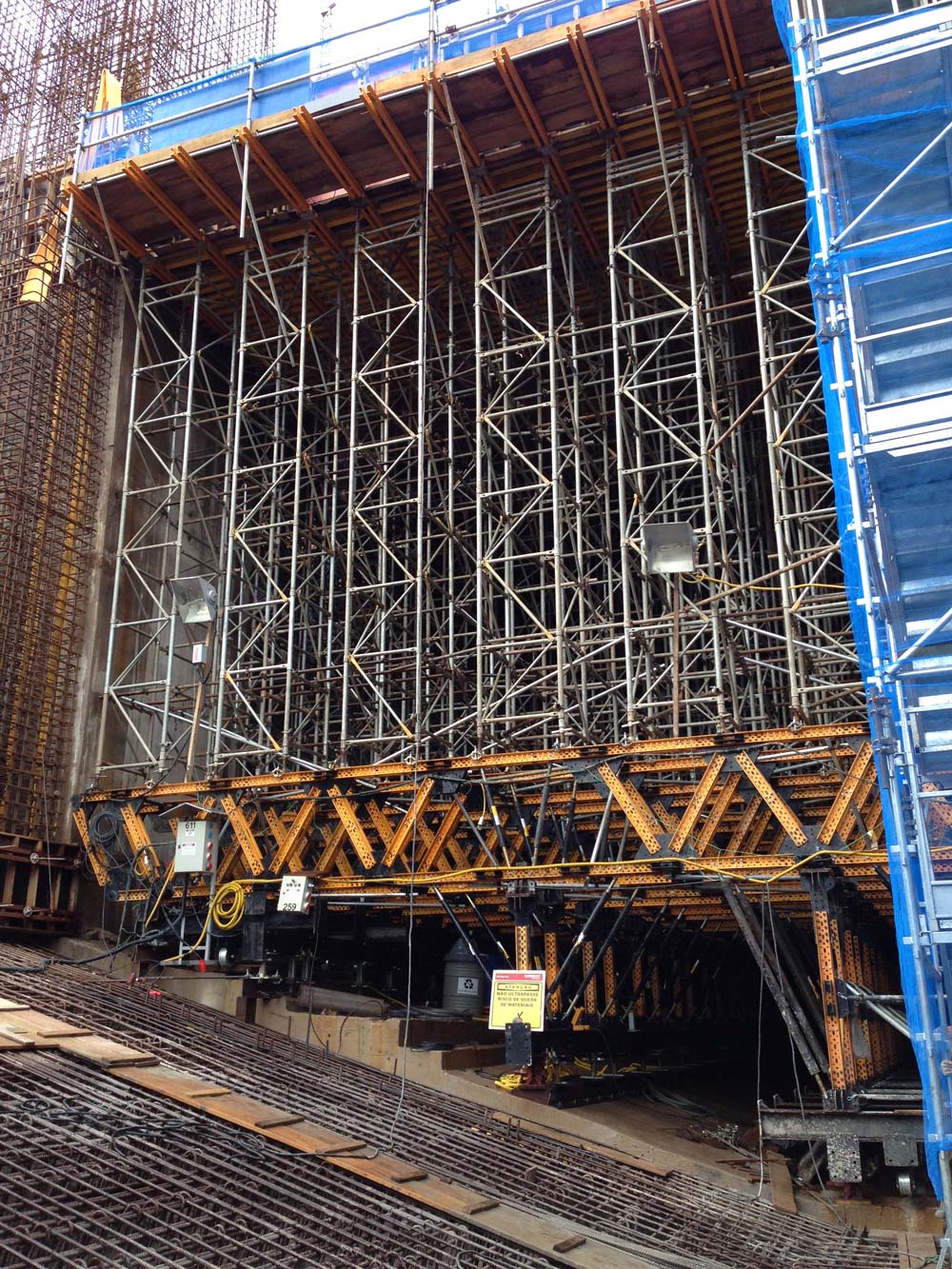 En este tipo de proyectos, parte de las premisas son garantizar la seguridad, el bajo costo, y la productividad. De ahí que ULMA haya propuesto un sistema capaz de trasladar el soporte del encofrado sin necesidad de ser desmontado.