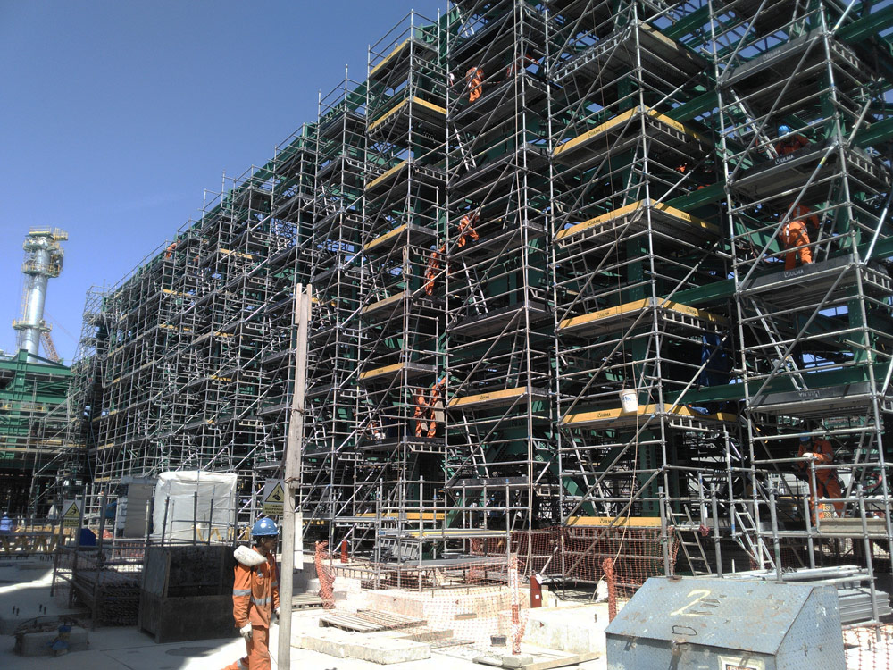 En una primera fase, se han construido las unidades de producción. Posteriormente, se han montado los racks y las estructuras metálicas, que sirven de soporte para los equipos propios de refinado y procesado de crudo, y el paso de tuberías. En ambas actuaciones, los encofrados y andamios ULMA han jugado un papel principal.