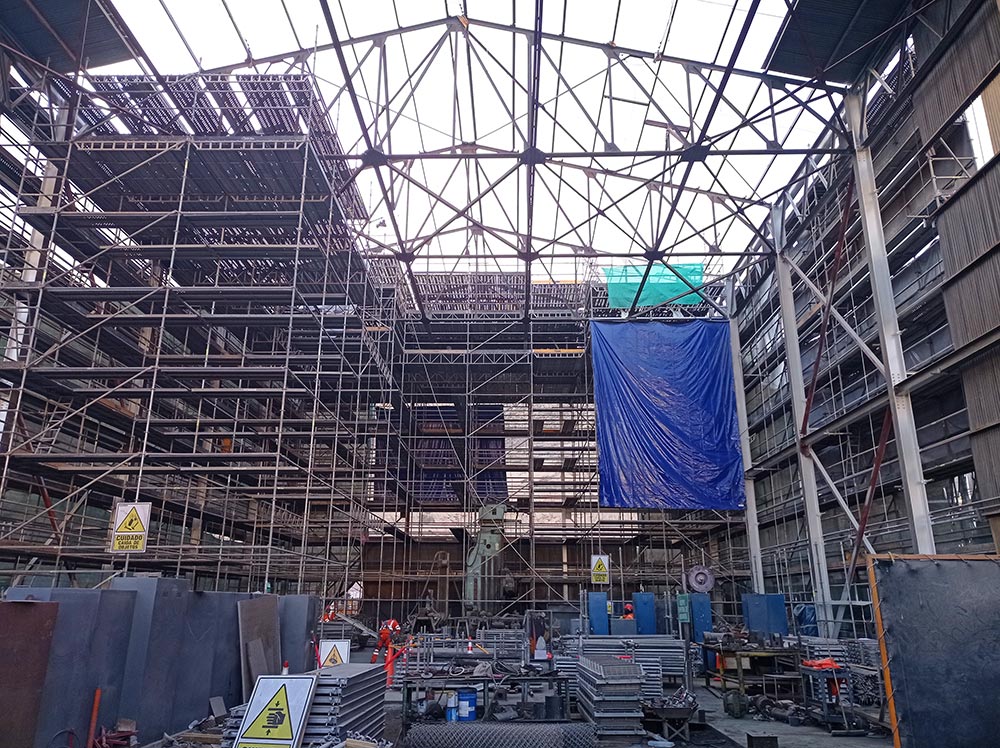- Andamios BRIO para el mantenimiento del taller existente (Boring Mill). Exteriores tipo fachada (Ancho=1.02 m, Altura=14.00 m) e interiores tipo torres (Altura=16.00 m).