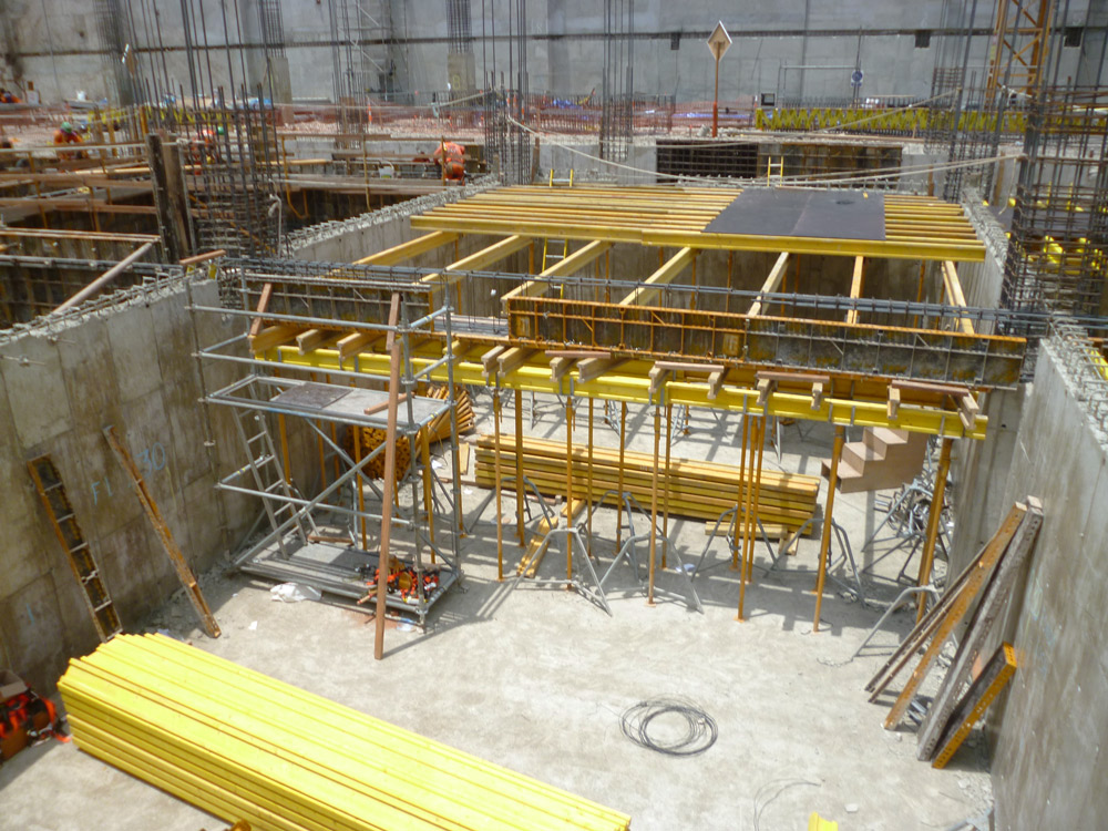 ULMA brindo para este obra soluciones típicas en las cuales se utilizaron los encofrados COMAIN para muros, placas y muros a una cara. Para el encofrado de losa en los primeros niveles se utilizaron puntales SP, vigas ULMAFLEX y encofrado COMAIN.