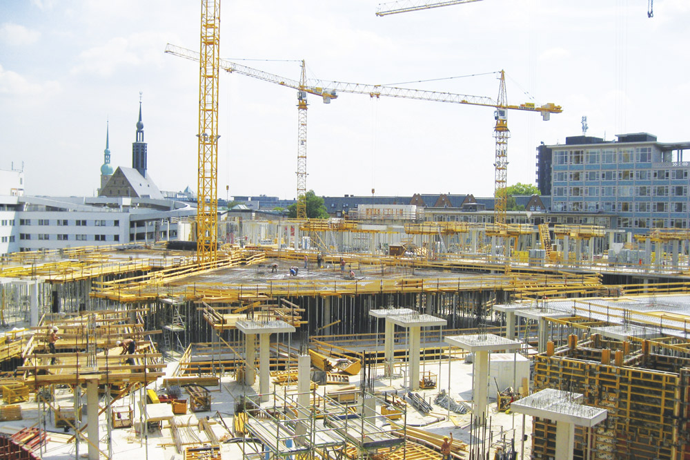 Los capiteles de columnas, ejecutadas con encofrado articulado F-4 MAX, se realizaron con Mesas VR trasladables. Sus vigas VM-20, forradas con tablero de 21 mm, garantizan un alto rendimiento en grandes áreas y soluciones repetitivas. .