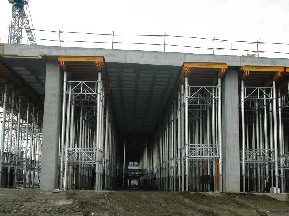 El edificio consta de dos plantas de estructura de concreto y una tercera de estructura metálica. . La planta baja es un forjado reticular de bloque recuperable 82x82, nervio 14 y espesor 40+7 con altura libre de 4 m y una superficie de 120.000 m2, mientras que la planta alta es un forjado aligerado con luces de hasta 16 m, canto de 58+7, alturas libres: 5,78 m y 4,93 m y una superficie total de 85.000 m2.