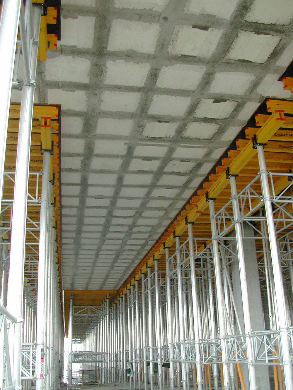 En la planta baja se hizo uso del Encofrado Horizontal RECUB y en la planta alta se utilizó la Mesa VR. Cabe destacar que fue la primera obra en utilizar la Mesa VR en la zona sur de España, se realizo cimbras mediante Puntales ALUPROP. Es por ello que supuso un objetivo importante a conseguir para ULMA. Gracias a los recursos aportados por el equipo técnico y la buena coordinación logística, se pudo realizar la obra en los plazos marcados y con el rendimiento de los productos esperados.