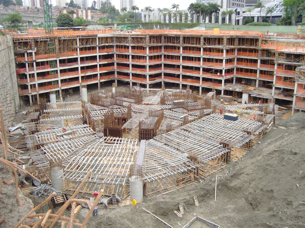 La periferia de la obra se divide en tres secciones de unos 2.000 m2, con 5 niveles de sótanos. La proyección del edificio tiene 2.400 m2, hasta totalizar 138.000 m2 de superficie construida.