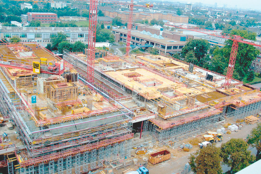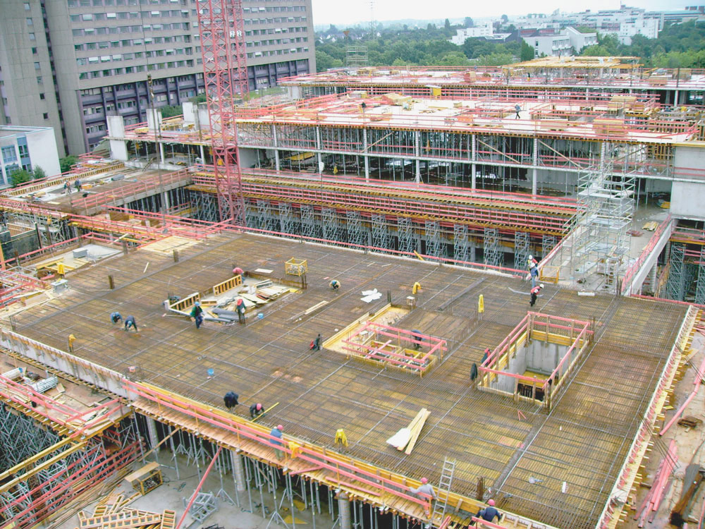Los forjados se ejecutaron con 68.000 m de Vigas de madera VM 20 y con 11.600 unidades de Puntal EP. Los muros se realizaron con Encofrado Modular ORMA por cuyas características técnicas la obra se ha ejecutado a un ritmo eficaz. La amplia gama de alturas y anchuras proporcionó adaptaciones particulares a las exigencias de la obra. Estas cualidades permitieron un rápido avance, porque una vez montadas las unidades, y fijadas mediante grapas, se trasladaron en conjuntos de paneles con grúa.
