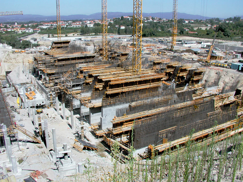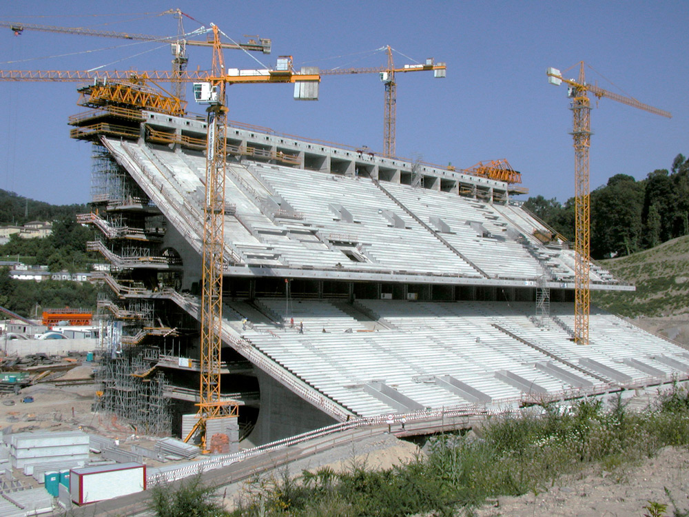 Proyectado sobre una cantera en desuso, el Estadio de Fútbol tiene un aforo de más de 30.000 espectadores. Consta de dos graderíos, "Nascente" y "Poente", en los laterales del campo de juego, y 3 galerías circulares que los atraviesan, además de dos plantas de estacionamiento bajo rasante. Su cubierta está formada por una trama de cables, con una luz de 220 m, que enlaza las dos tribunas.