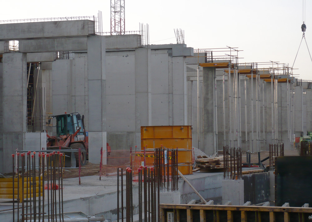 La ejecución de este proyecto supuso un desafío constructivo por los altos ritmos de trabajo necesarios para desarrollar esta obra en los plazos determinados, además de mantener siempre altas cotas de calidad en el acabado. De ahí que se empleasen sistemas rentables, eficientes y de fácil manipulado como el encofrado de aluminio CC-4, para la ejecución de losas, y el sistema modular ORMA en el desarrollo de los muros de las gradas.