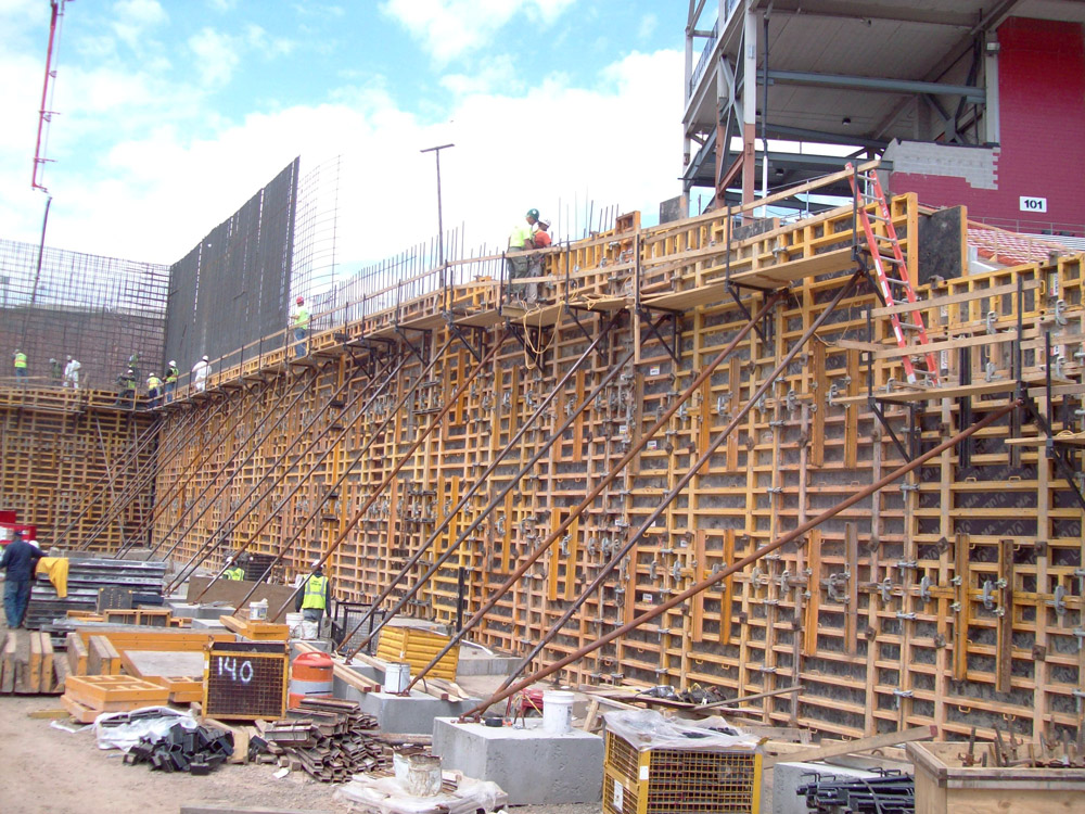 El breve plazo de ejecución de este estadio de fútbol exigió soluciones eficaces tanto en productos (encofrados y cimbras) como en el suministro ya que, en 6 meses, con el inicio de la temporada, la obra debía estar finalizada.