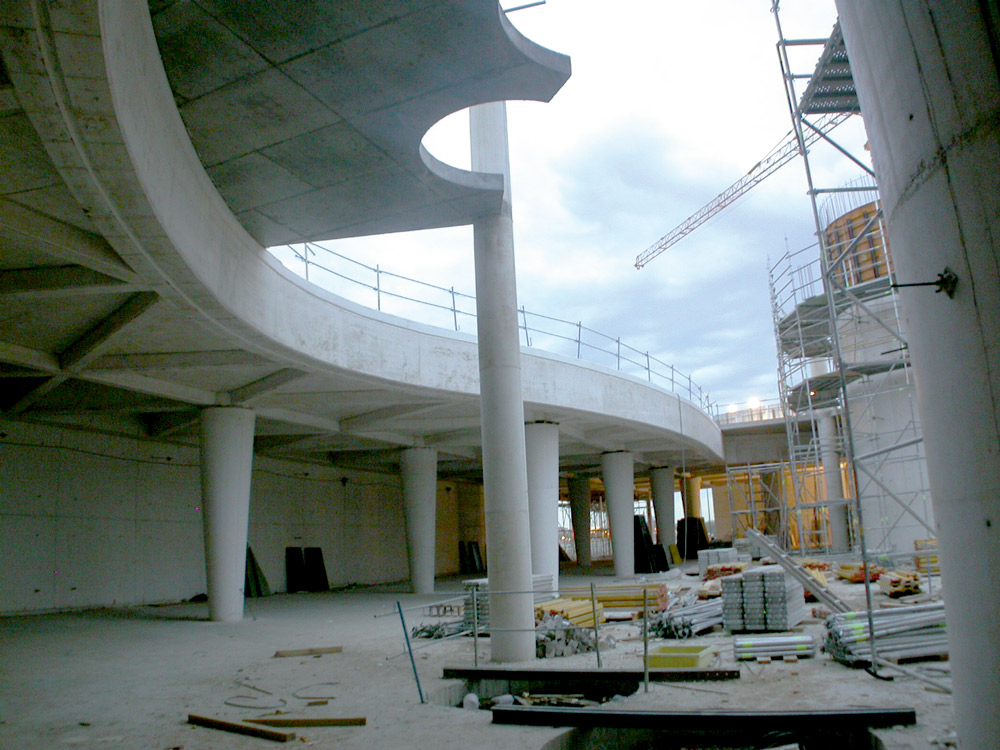 El Palacio de Congresos, adecuado para 1.500 espectadores, requirió de un acabado cara vista. Para conseguirlo se empleó el Encofrado Vertical ORMA con fenólicos exclusivos para superficies blancas. La idea era conseguir una apariencia similar al mármol que fue posible gracias a unos encargados de obra con gran experiencia y formación. El resultado fue excepcional.