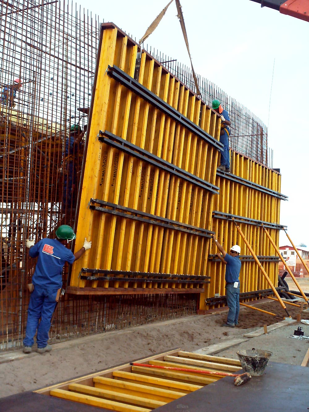 En la ejecución de los muros se utilizó el Encofrado ENKOFORM VMK con consolas de trepado por ambas caras. Con este sistema se crearon dibujos predefinidos con tableros de 1 x 2,5 m obteniéndose un perfecto acabado en el concreto. El gancho de izado garantizó la seguridad de la elevación de los conjuntos de encofrado, de 5 x 4 metros, durante todo el proceso. A esto hay que añadir que las plataformas de trabajo crearon espacios estables y seguros.