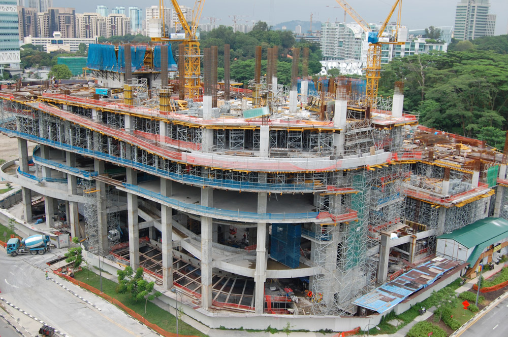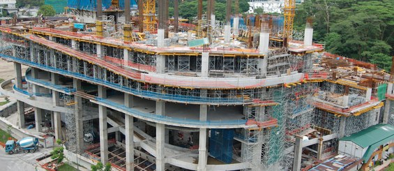 Las losas y vigas de cuelgue en el piso tipo se ejecutaron con Mesas VR y Puntales EP, cuya gama permitió adecuarse a las alturas de cada planta. Este encofrado horizontal fue el idóneo para todas las losas y facilitó un rápido montaje y mínimo consumo de tiempos en los movimientos horizontales y verticales de obra. Asimismo, en las tres primeras plantas, de 11 m cada una, se emplearon Mesas VR con T-60 y Encofrado Horizontal de Vigas de madera ENKOFLEX.
