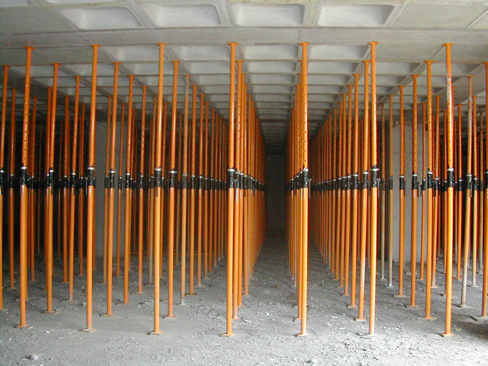 La tercera planta, de losa maciza, se realizó con Mesas VR apoyadas sobre Puntales EP que soportaron las cargas del forjado. La particularidad de este sistema residió en que se montó al inicio de la obra y se trasladó, sin desmontar, de una zona a otra con la economía de tiempos y costos que supuso.