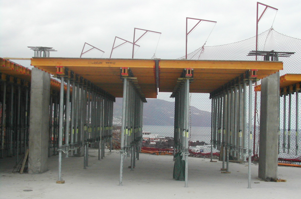 La plataforma está constituida por un edificio de tres plantas subterráneas. En la ejecución de la losa aligerada de las dos primeras plantas, se empleó el Encofrado Recuperable RECUB, con un nervio de 18 cm y como sistema de apuntalamiento Puntales SP. Este sistema demostró altos rendimientos en obra ya que se encofró la planta completa por ser de pequeña superficie. La ejecución, colocación del fierro y seguridad del personal se incrementó.
