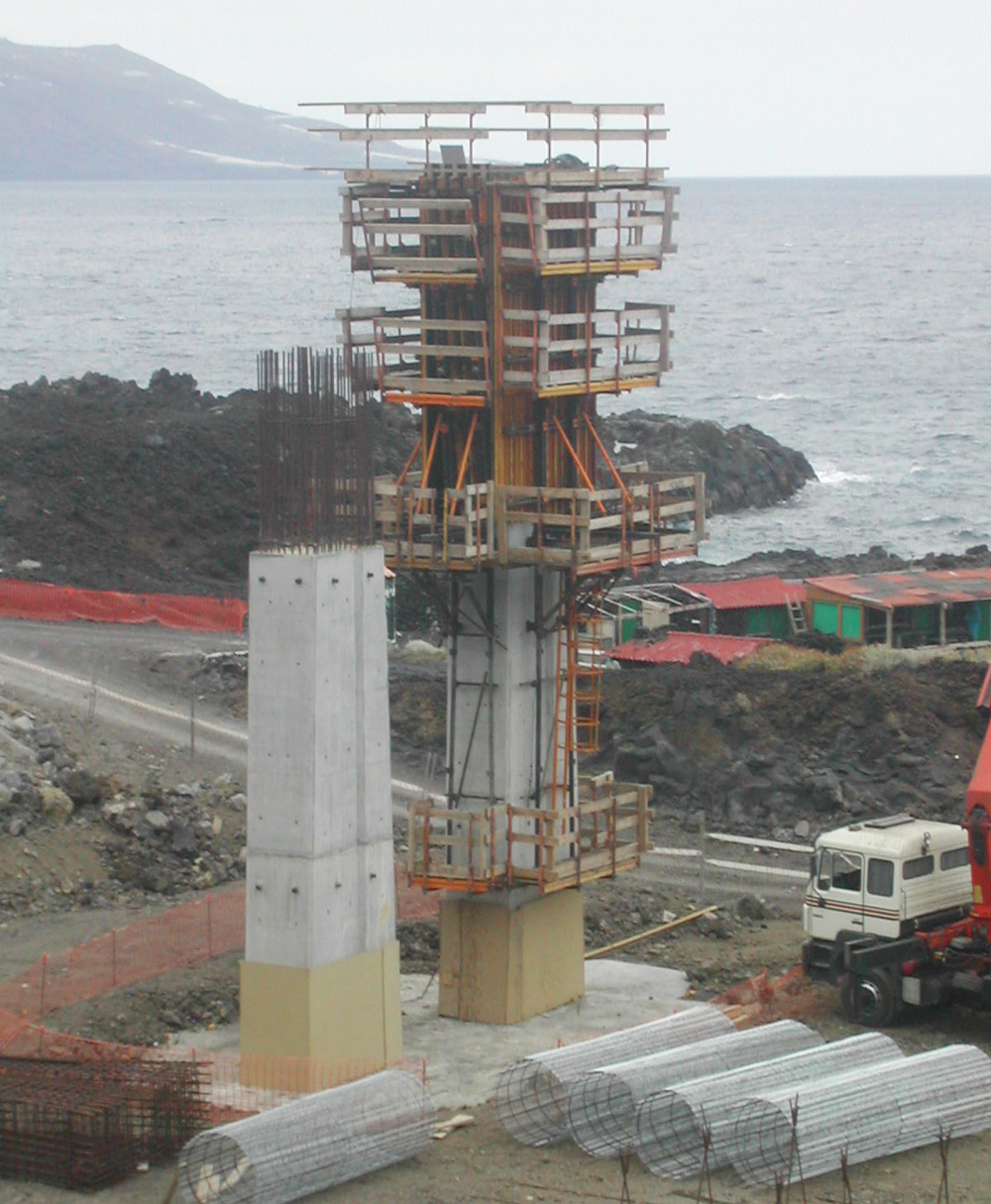 Las columnas de los accesos al aeropuerto se ejecutaron con la perfecta combinación entre consola de trepado y ENKOFORM VMK. Este conjunto polivalente fue capaz de solucionar las diversas geometrías que se dieron en obra empleando siempre elementos estándares.
