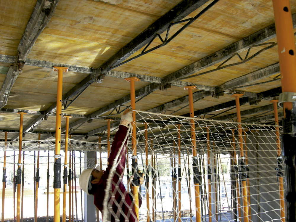 Para salvar el fuerte desnivel existente, se diseñaron losas a diferentes alturas que se ejecutaron con el Encofrado Horizontal RAPID sobre Puntales SP. La protección de los trabajadores fue continua en todo el proyecto, montaje y desmontaje. Como sistemas de seguridad se emplearon las barandillas y redes bajo forjado, la solución más eficaz para evitar cualquier caída durante la colocación del tablero.