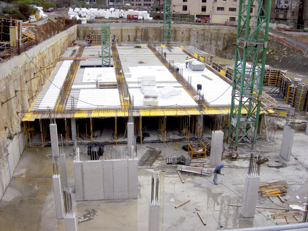 El sistema ORMA demostró su facilidad de uso como encofrado vertical a una cara. Resolvió los esfuerzos de empuje horizontal en el momento del vertido del concreton en los muros perimetrales de la obra. Su facilidad de montaje y desmontaje permitió mantener el ritmo de ejecución deseado.
