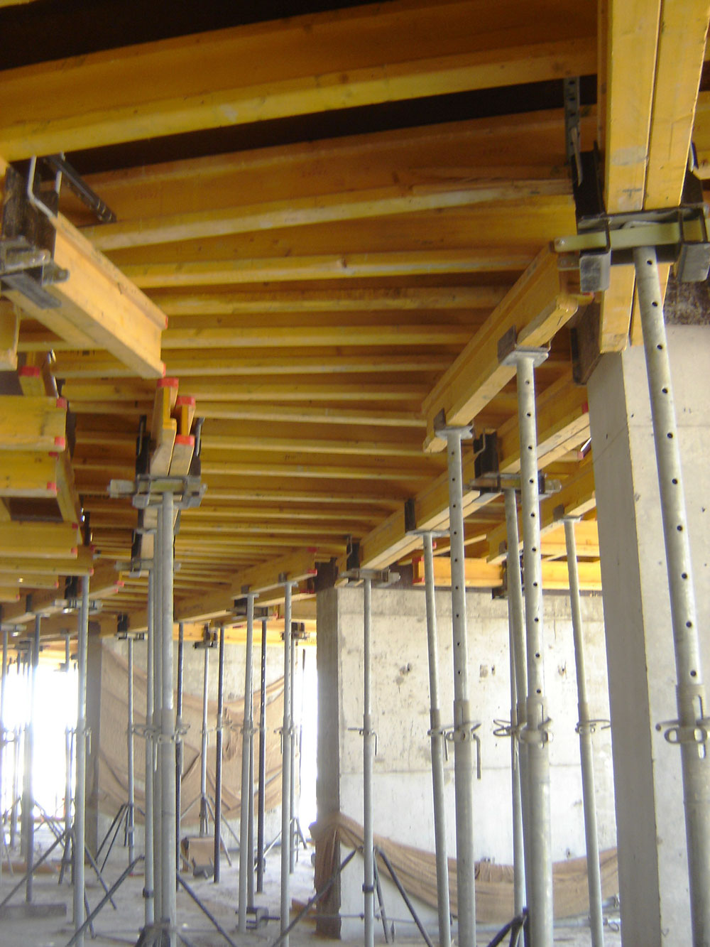 Las losas de concreto, en los pisos superiores, se encofraron con Mesas VR cuyo traslado, a distintas ubicaciones, pudo realizarse sin la necesidad de ser desmontadas, ni manipuladas. El ahorro de tiempo fue considerable.