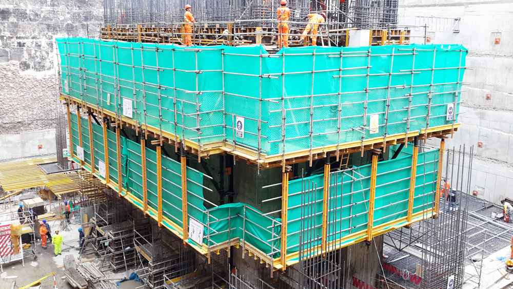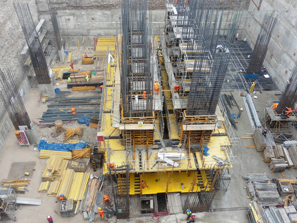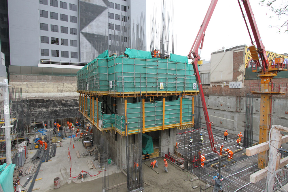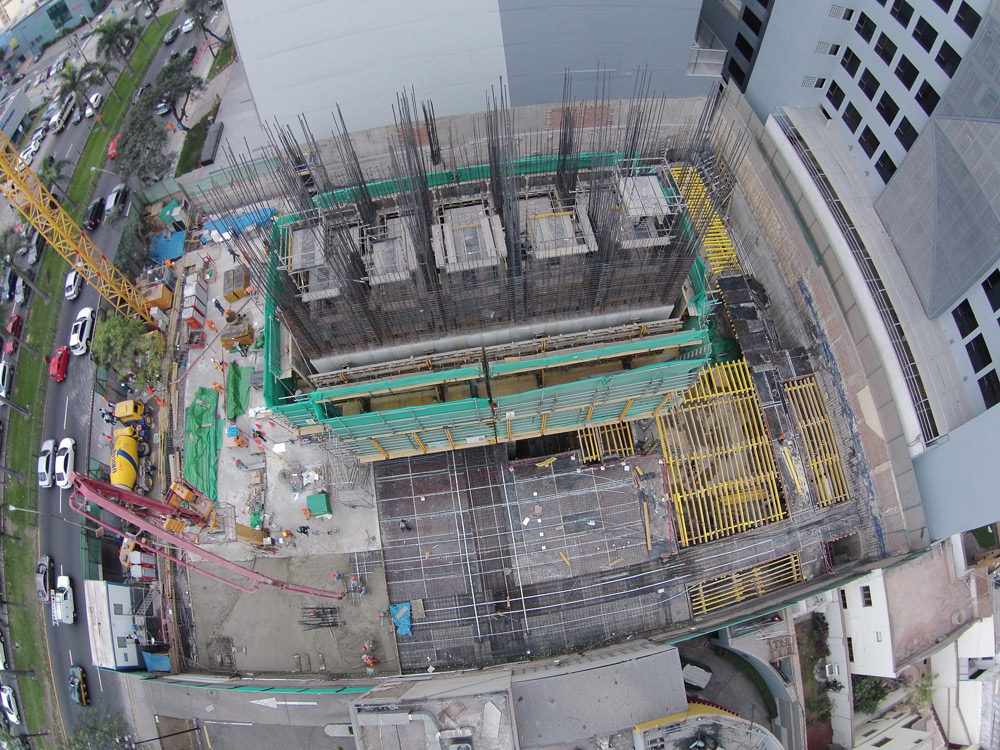 Se observo que desde el sótano 10 al piso 19 el núcleo principal requería un que sistema pudiera encofrarse en bloque y no requiera grúa para su elevación, con el cual se opto por el sistema ATR, este sistemas auto trepante, consta básicamente de un sistema de trepa convencional, al que se añaden soluciones mecánicas e hidráulicas, para conseguir que la elevación del sistema se realice sin la necesidad de grúa.