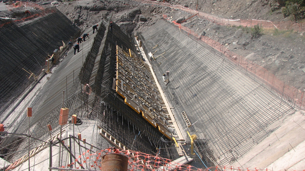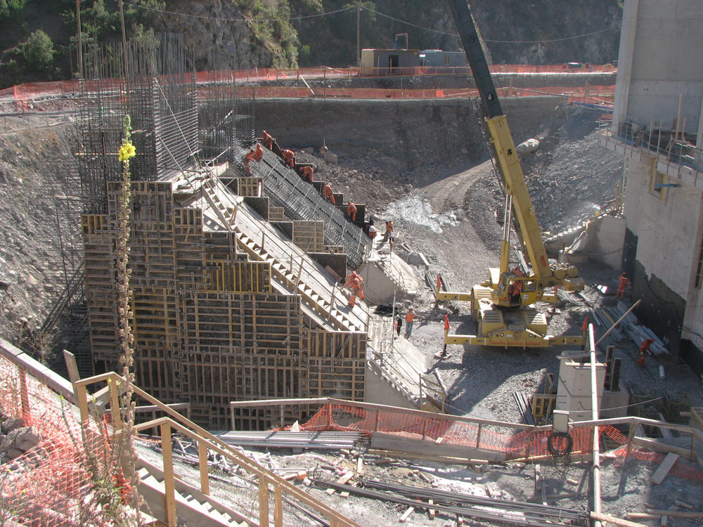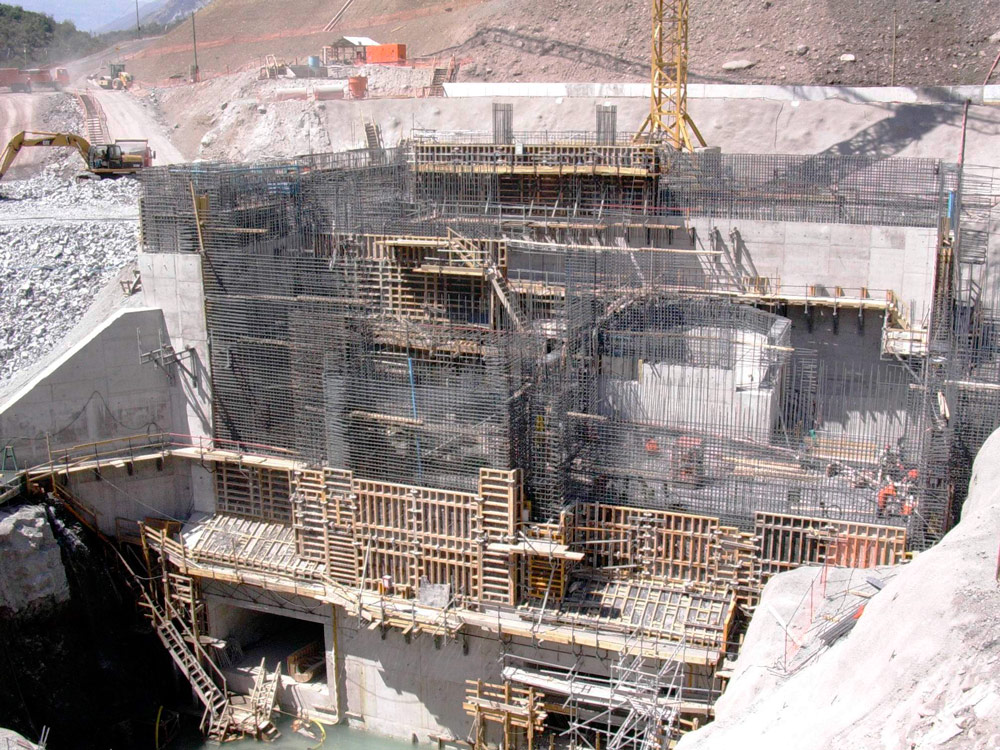 El proyecto incluyó la construcción de diferentes estructuras: casa de máquinas, casa de válvulas, túneles, bocatomas.., lo que supuso el empleo de más de 100.000 m3 de concreto.