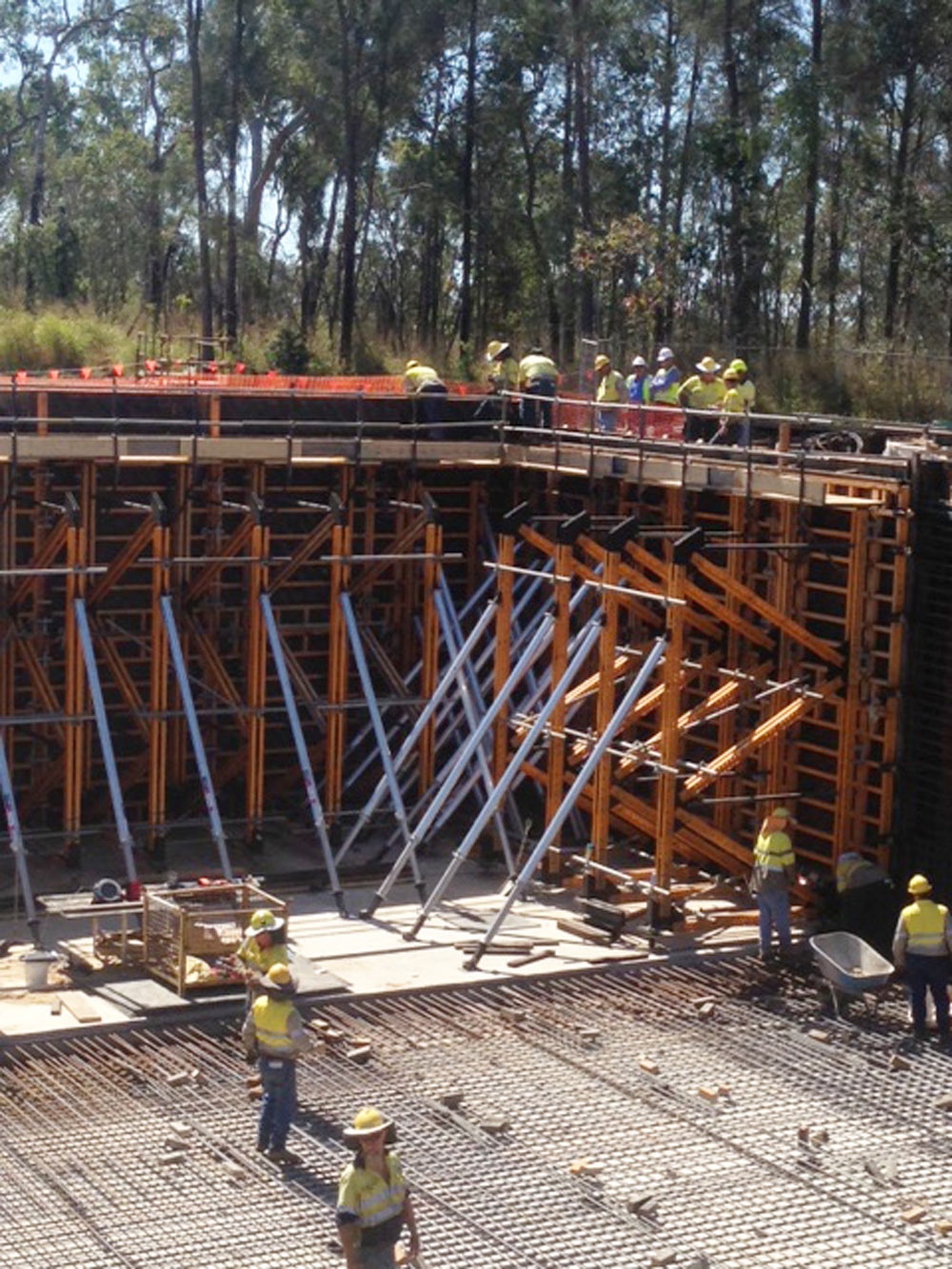 Entre los continuos desafíos que implica un proyecto de este tipo, cabe destacar el diseño del encofrado. El sistema debía tener en cuenta las cargas propias del encofrado así como las del hormigonado sobre una losa de 300 mm y pilas. El diseño ha permitido el hormigonado en una sola tongada de 5,4 m y reduciendo el número de juntas en un depósito rectangular.