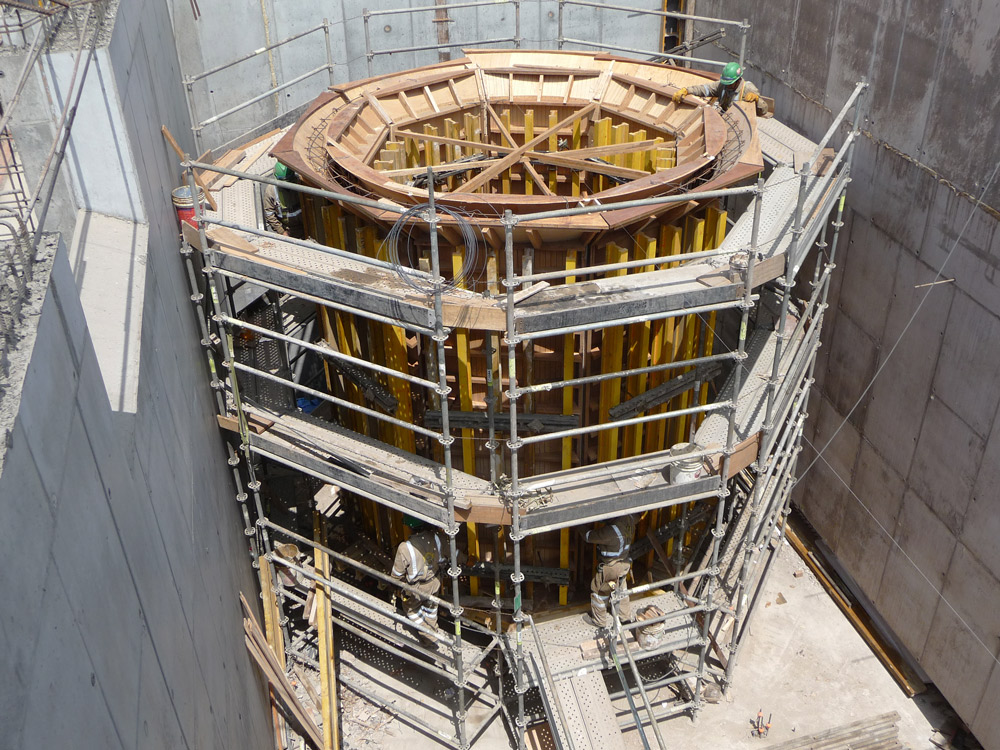 Gracias a su sistema de anclaje, constituido por barras roscadas y Tuerca placa campana, estos paneles soportaron las altas presiones de concreto características de este tipo de construcciones.