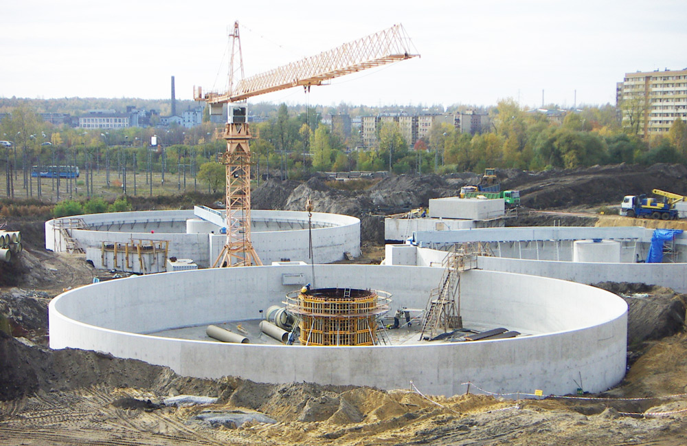 Consistieron en 3 estructuras radiales de 20 m de diámetro y 5,5 m de altura. La demanda de un concreto de alta calidad supuso el empleo de un encofrado de vigas que permitió adecuarse a las particulares formas de los depósitos. Los tanques de sedimentación, ejecutados con módulos de paneles de 1/8 de circunferencia, se reutilizaron con las correspondientes compensaciones logrando los acabados deseados.