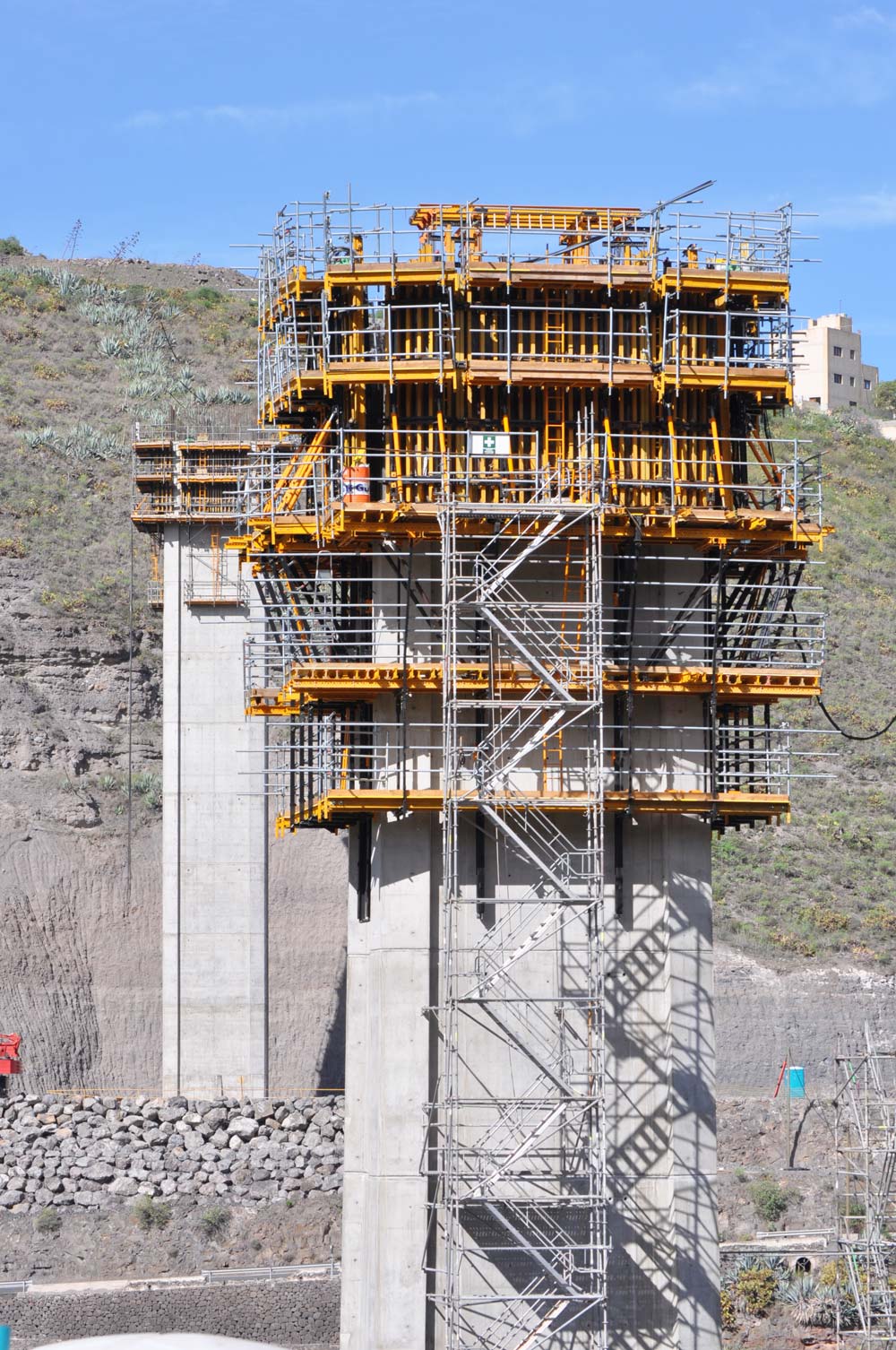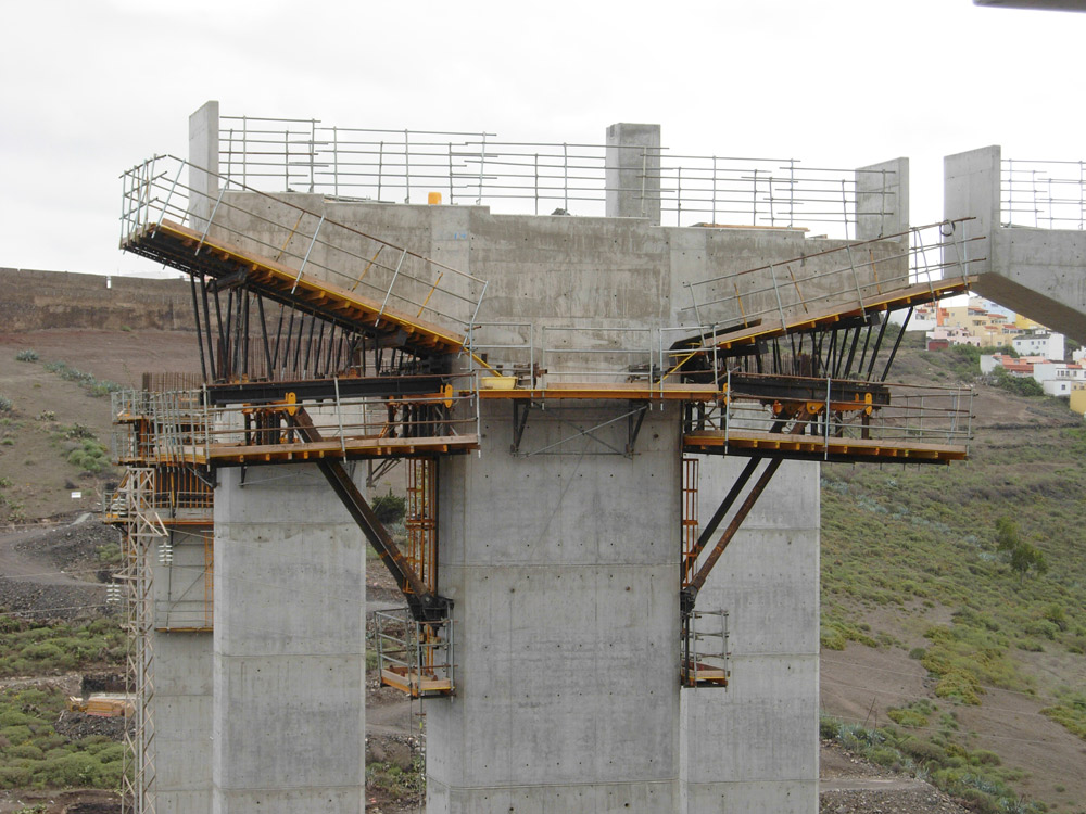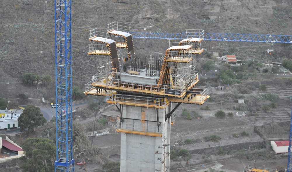 Para la construcción del puente, se empleó el sistema de voladizos sucesivos, que crecen a ambos lados de las columnas.