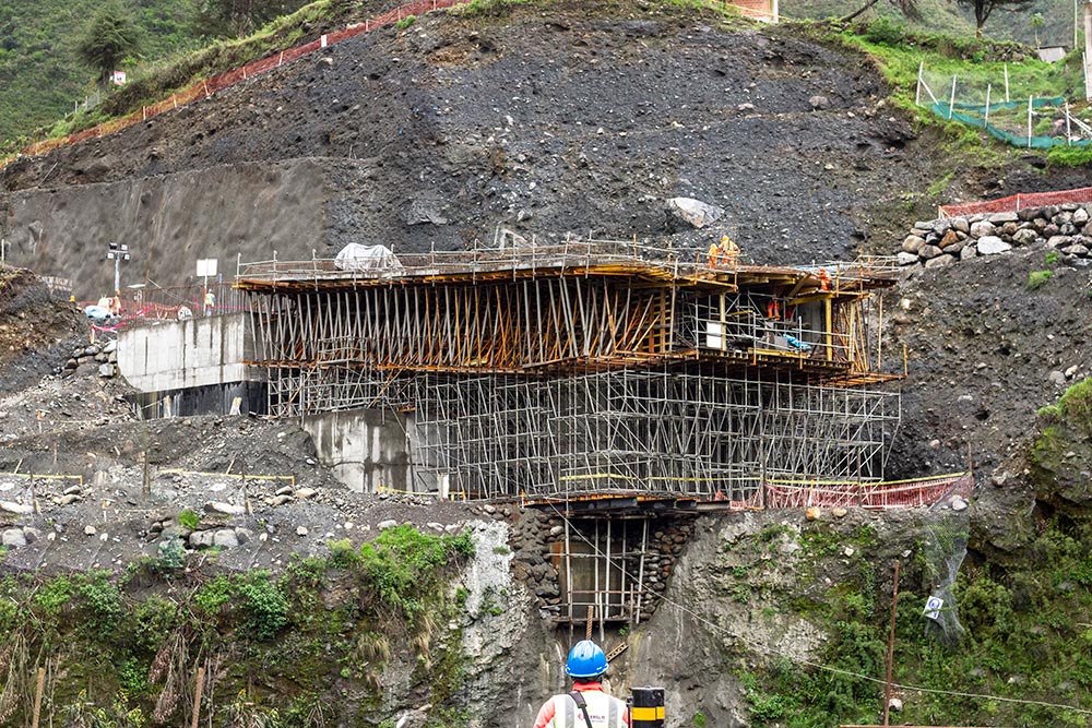 - La construcción de la dovela extrema fue ejecutada en 2 etapas, en la primera etapa la losa inferior y en una segunda los hastiales y losa superior. La losa inferior y los hastiales fueron encofrados con el sistema ENKOFORM HMK y el soporte de losa superior fue diseñado con el sistema multidireccional BRIO.