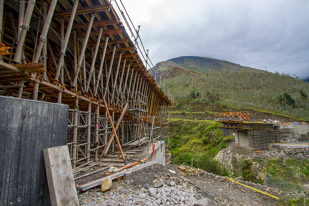 El puente Ollachea es un puente semi-integral de hormigón pretensado con sección en cajón. Como parte de su subestructura tiene dos pilas y dos estribos. La súper-estructura consta de tres vanos, dos dovelas extremas y una central. Los vanos del extremo se construyeron in situ y el vano central se ejecutó mediante la tecnología de voladizos sucesivos, idónea para ejecutar tableros de puente que necesitan salvar grandes luces entre columnas y alturas elevadas.