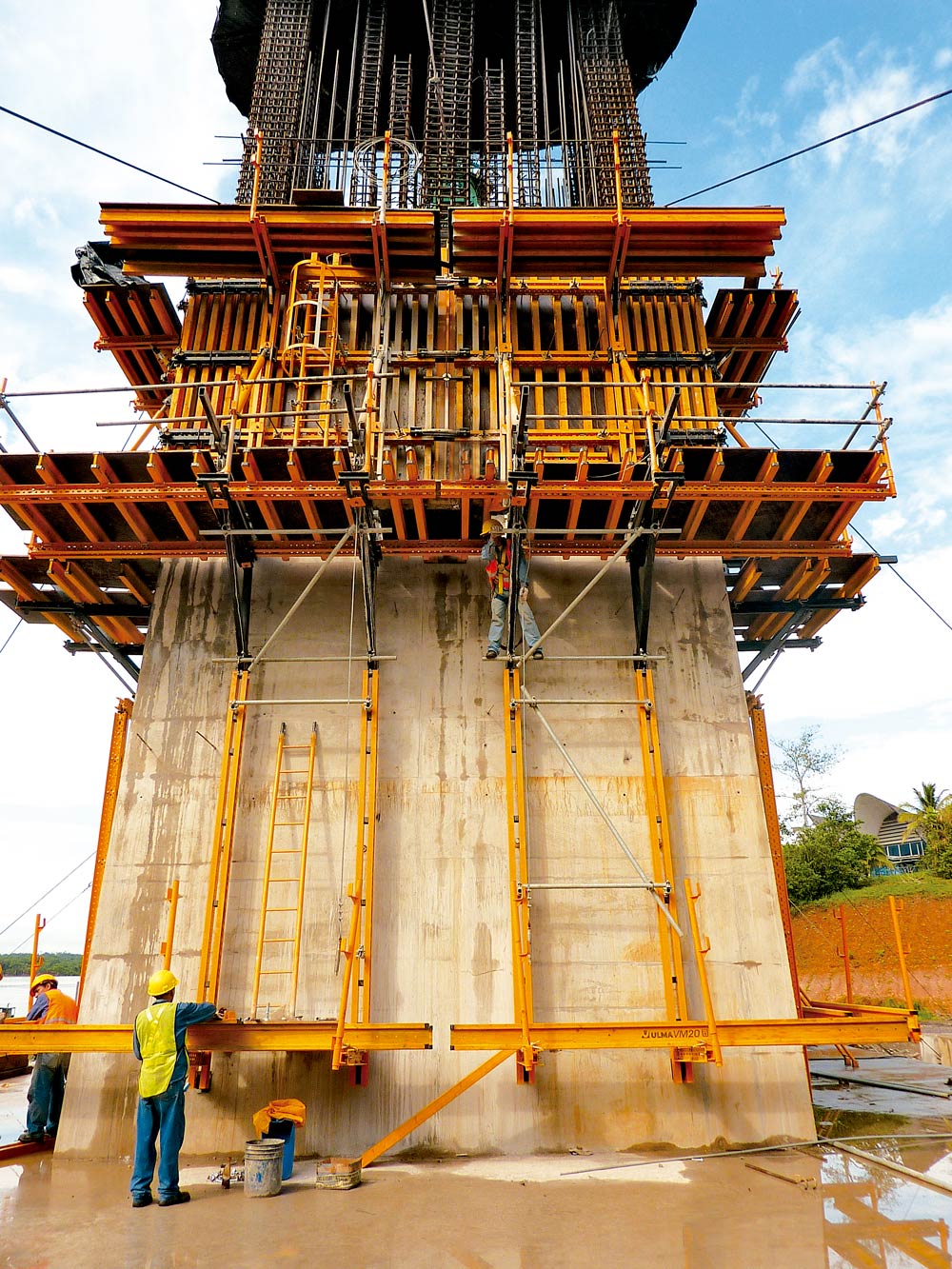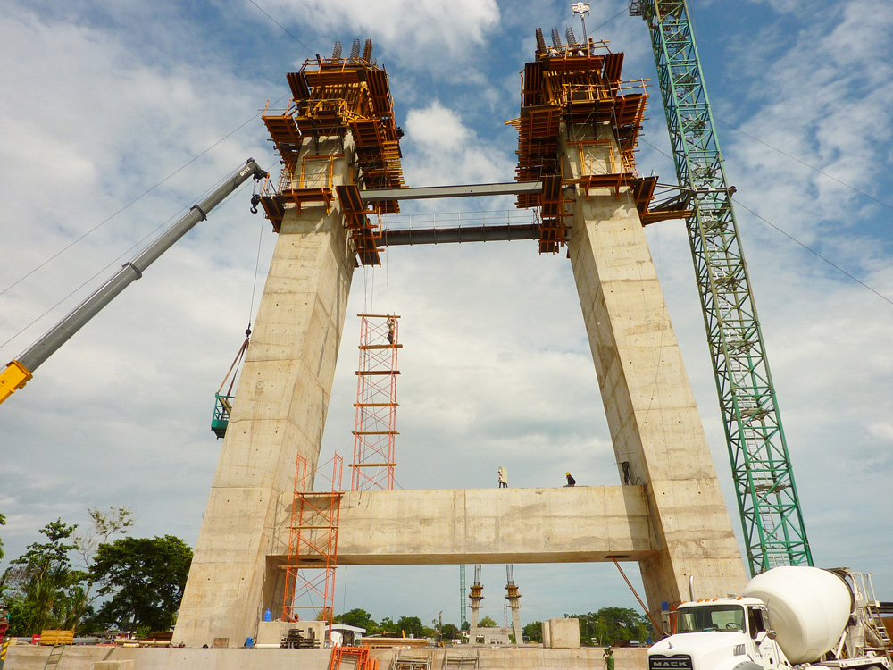 Para la construcción de las dos torres, vigas de peralte, columnas intermedias y estribos, ULMA incorporó el sistema de encofrado horizontal ENKOFORM HMK, vertical ENKOFORM VMK, tensores y consolas de trepado.