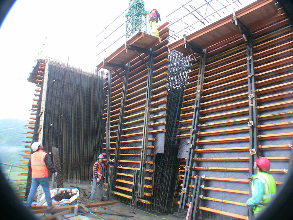 Las columnas de hasta 70 m de altura se realizaron en diferentes tongadas mediante la Consola de trepado CR-250 y el encofrado vertical ENKOFORM V-100.