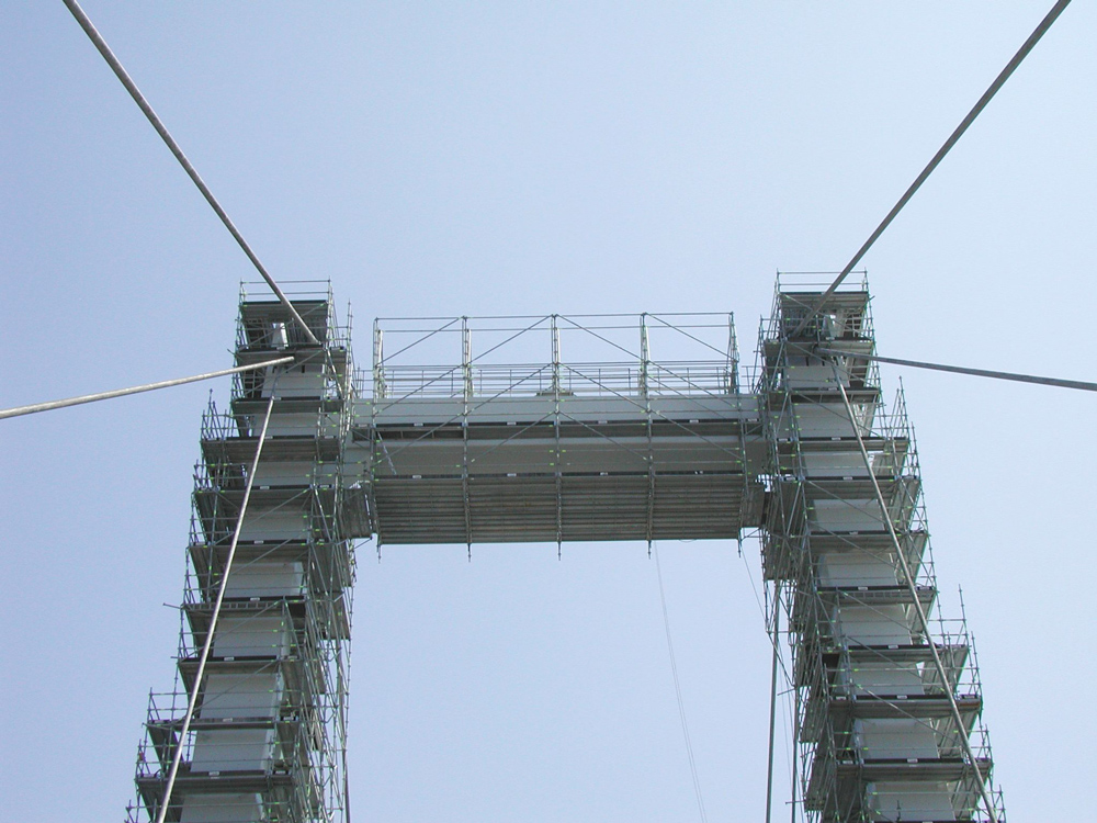 La singularidad o complejidad de esta obra erradicaba en la cambiante sección de cada una de las torres laterales que conformaba la columna. Gracias a la versatilidad del Andamio Multidireccional BRIO se pudo dar solución a este proyecto.