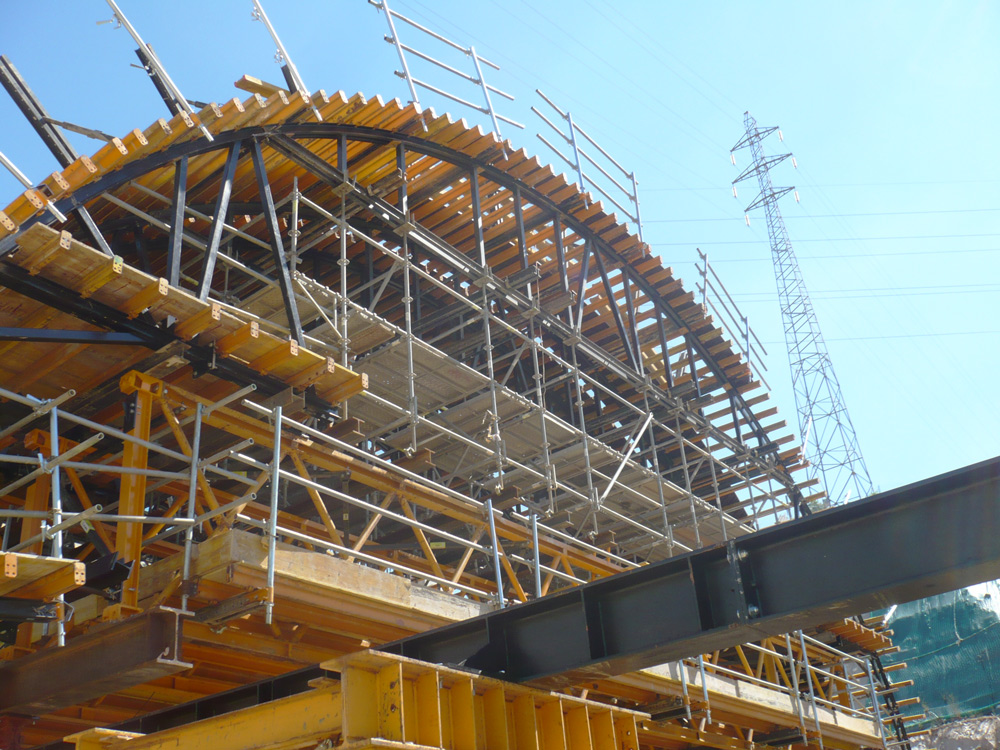 Los trabajos se realizaron a 17 metros de altura, ya que en el piso inferior circula el metro y las losas intermedias tienen un espesor reducido. Al no poder emplear el sistema de cimbra cuajada, se planteó una compleja solución técnica: a partir de un carro porta-encofrado en altura, y apoyado en Cimbra T-500, Estructuras H-33, BRIO y riostras curvas, se salvaron refuerzos transversales de concreto cada 5,2 m.