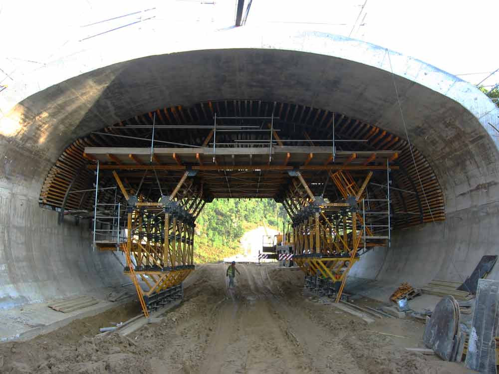 El falso túnel se ejecutó en dos fases de vaciado de concreto: hastiales y bóveda.