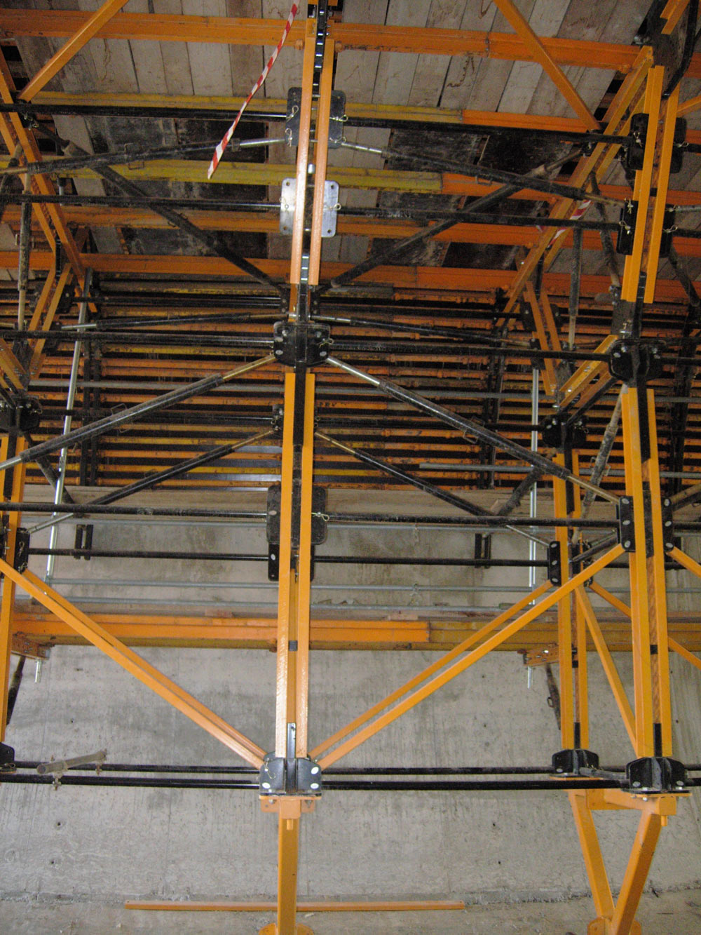 En zonas de bóveda que requieren de encofrado a dos caras, se emplea un encofrado exterior con grúa, que se unirá a una plataforma de trabajo formada por Consolas ORMA, para aplomar el paño exterior.