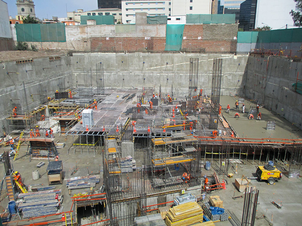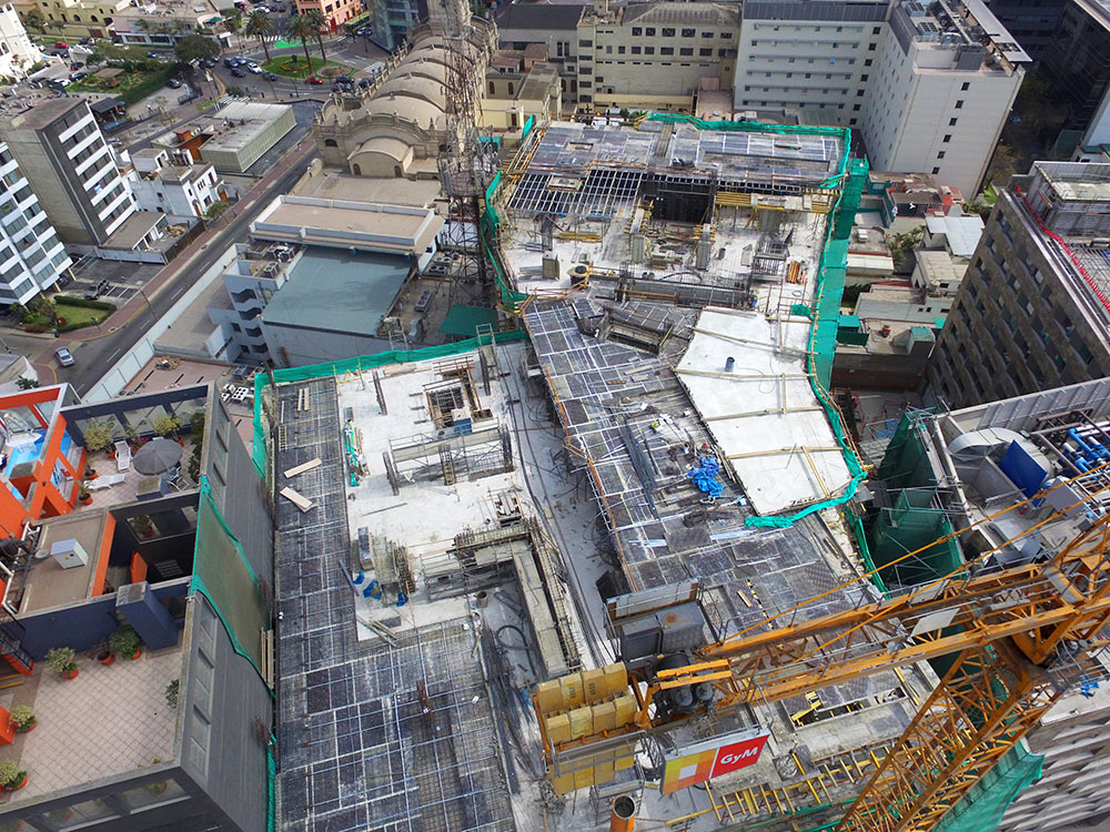 Para el encofrado de las soluciones especiales del proyecto se usaron riostras MK-120 combinadas con puntales ALUPROP, formando así escuadras que servían de plataforma de apoyo para el ONADEK o ENKOFLEX, según requería la obra. Para encofrado de elementos verticales se empleó la solución modular COMAIN.