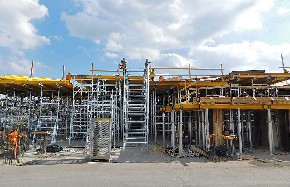 En esta clase de proyectos compuestos por varios tipos de edificios requieren de sistemas de encofrados y apeos versátiles, fáciles/sencillos y rápidos de montar. ULMA ha suministrado ambos tipos de sistemas para la zona comercial, el hotel y el parking.