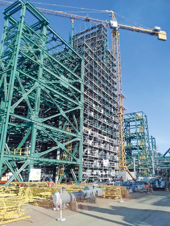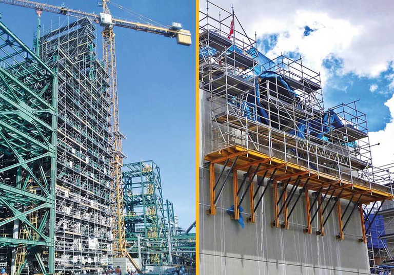 El proyecto Talara contempla la instalación de nuevas unidades productivas y la implantación de nuevos sistemas y procedimientos que ampliaran su capacidad y eficiencia. Uno de los principales retos ha sido proyectar estructuras livianas y con gran capacidad de carga, teniendo en cuenta el peso de los componentes metálicos, las sobrecargas de trabajo y la carga de viento. Las 4.500 t de BRIO han cumplido una doble función, en forma de plataformas de trabajo con soluciones versátiles en diferentes etapas constructivas, y como cimbra ofreciendo un apeo resistente y seguro para el hormigonado de losas y vigas a alturas y con espesores considerables. Los andamios suspendidos en los racks de tuberías se han modulado en anchos de 6, 8, 10 y 12 m y hasta 6 niveles de plataformas en altura. Con componentes estándar y modulares ha sido posible suspender el sistema, sortear el tendido tuberías, etc., es decir, aportar una solución a cada aplicación. Las torres de andamio han jugado un papel fundamental para el acceso y los trabajos en altura. Se han modulado torres especiales de hasta 60 m de altura.