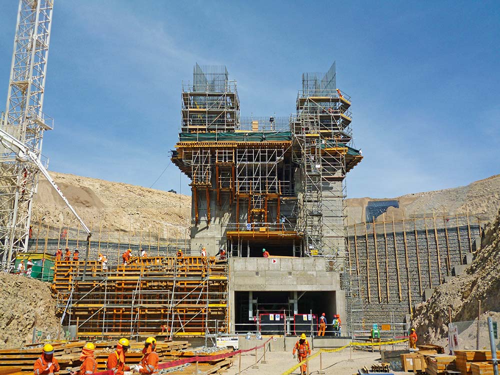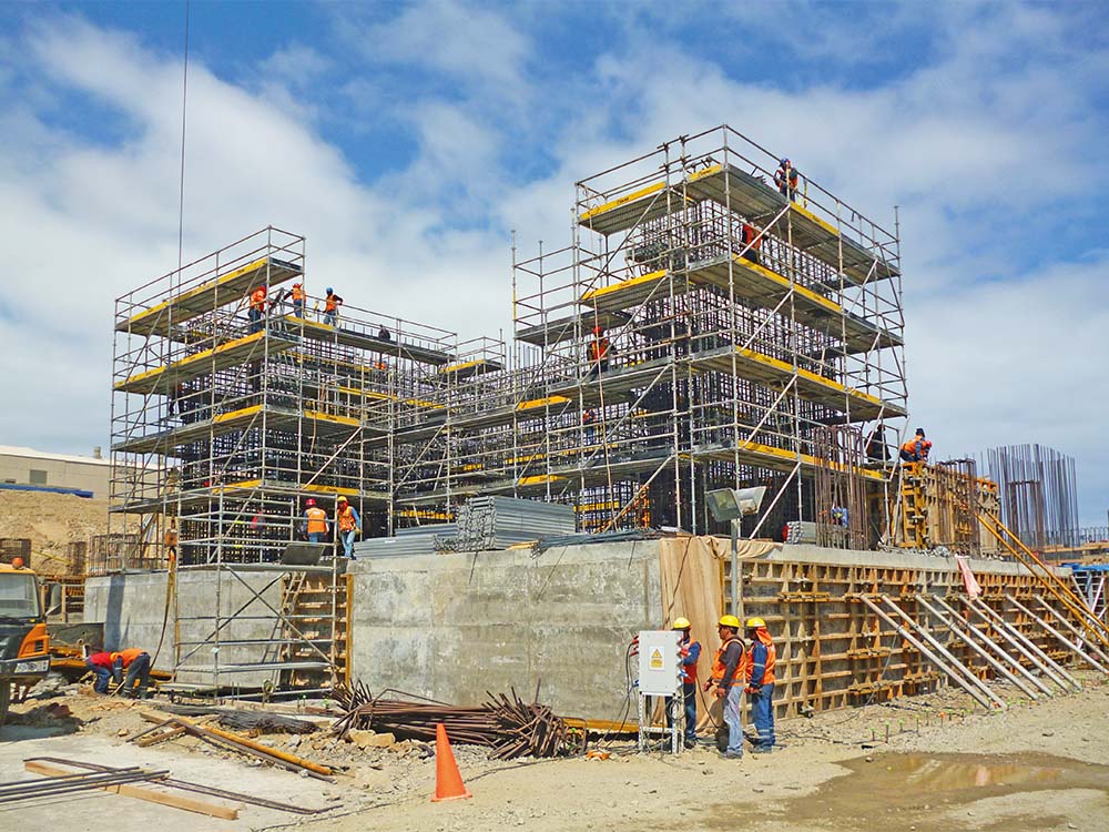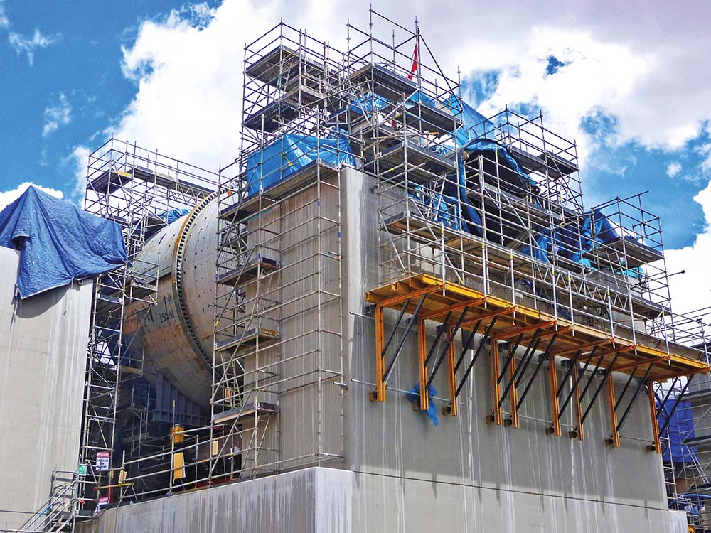 ULMA ha estado presente en este proyecto desde su construcción en 2007 hasta la actual ampliación. Estas últimas obras triplican la capacidad de procesado mineral, a 360,000 toneladas, en una mina que produce más del 20% de cobre del país. En la losa de 2.50 m de espesor, las torres de cimbra T-60 arriostradas entre sí, incrementaron en más de una tonelada su capacidad de carga y obtuvieron rendimientos notables, por su diseño móvil en el proceso de desencofrado. El sistema modular ORMA se empleó como encofrado de las diferentes estructuras verticales que requerían: soportar grandes presiones de concreto, pocos accesorios y montaje de conjuntos que facilitaron el manipulado. Como sistemas de trepado se plantearon: las consolas a una cara SBF, capaces de soportar grandes cargas y al mismo tiempo actuar como plataformas de trabajo para los operarios, así como las consolas BMK. A lo largo del proyecto, el andamio multidireccional BRIO fue usado como acceso de trabajo, en la forma de escaleras.