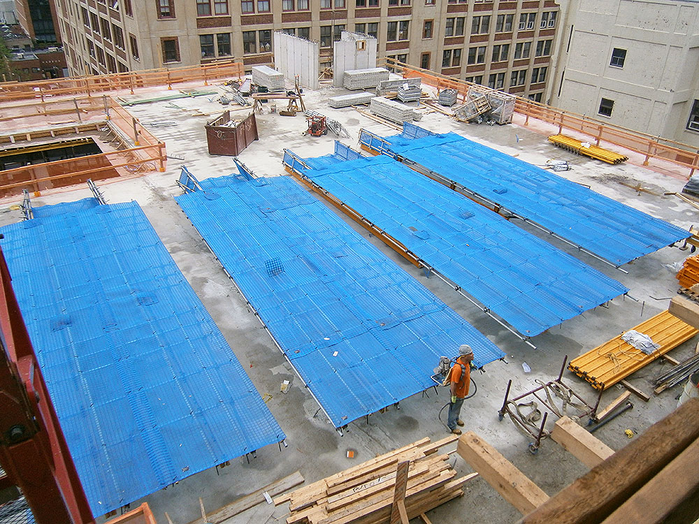 Para minimizar los trabajos de montaje en obra, los paneles se han premontado en las instalaciones de ULMA en New Jersey. Se han diseñado de manera que se ha optimizado su tamaño para el transporte y conseguir paneles de gran anchura para colocarlos en el edificio e incrementar los rendimientos de ejecución.
