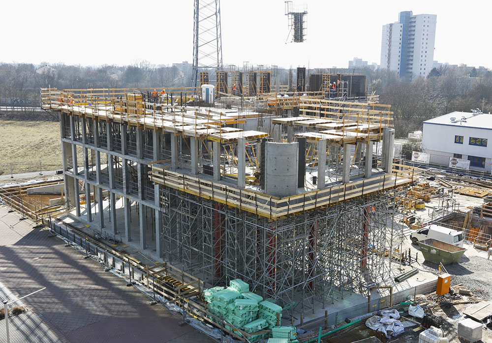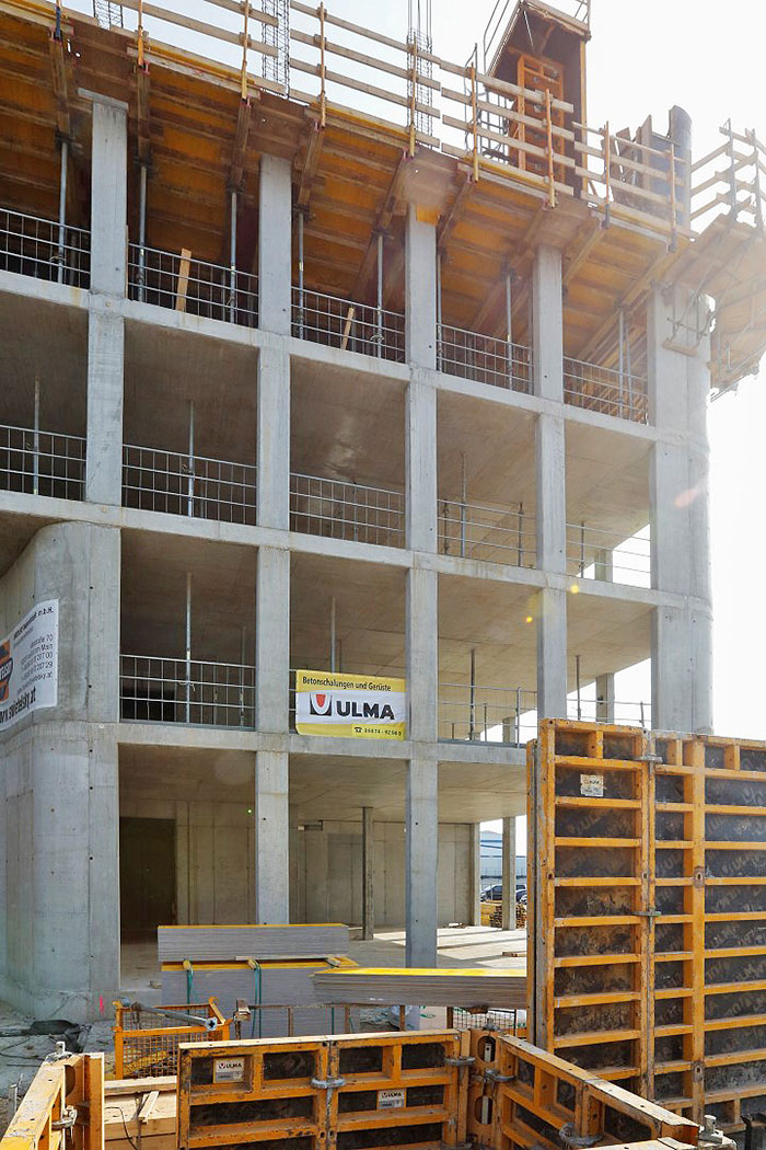 Con un amplio portafolio de encofrados y andamios, ULMA ha aportado la solución más adecuada y rentable para cada una de las aplicaciones del proyecto: encofrado modular Mesa VR, encofrado de losas de aluminio CC-4, encofrado modular ORMA y encofrado de pilares F-4 MAX, todos ellos necesarios para ejecutar los bordes curvos y las galerías en forma de S.