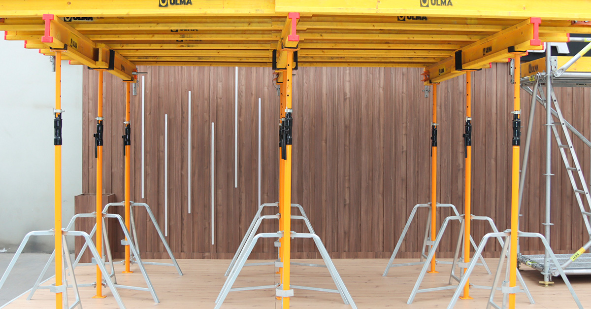 Otra de las soluciones destacadas en este showroom es el sistema de encofrado de madera Enkoflex, que se caracteriza por su gran adaptabilidad a losas de diferentes geometrías y configuraciones. Este sistema, compuesto por vigas de madera independientes, permite crear estructuras para losas macizas, aligeradas, inclinadas, y vigas con una facilidad de montaje que optimiza el tiempo de trabajo. Enkoflex es especialmente valorado por su flexibilidad y por los acabados de concreto cara vista que ofrece, lo que lo convierte en una excelente opción para proyectos donde la estética y la calidad superficial del concreto son factores clave. Gracias a su diseño eficiente, el sistema reduce la cantidad de componentes necesarios y facilita un montaje y desmontaje rápido, minimizando el tiempo de inactividad en la obra.