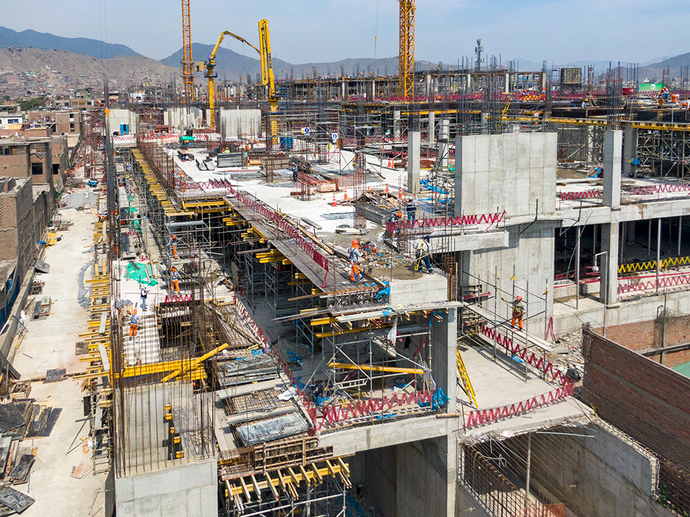 El encofrado modular NEVI fue elegido para la ejecución los muros de pantalla utilizando el método constructivo de los paneles enterrados conocido tradicionalmente en Perú como sistema Pachamanca. Mientras que para los fondos y laterales de viga se recurrió al encofrado modular ligero COMAIN.