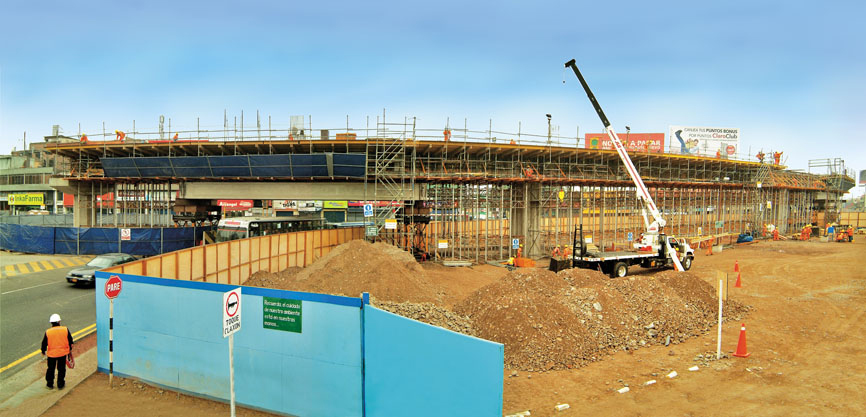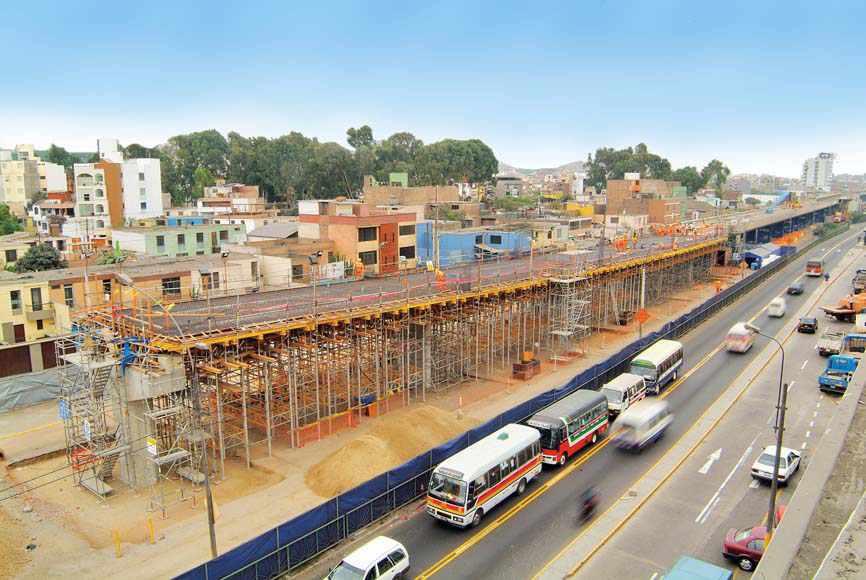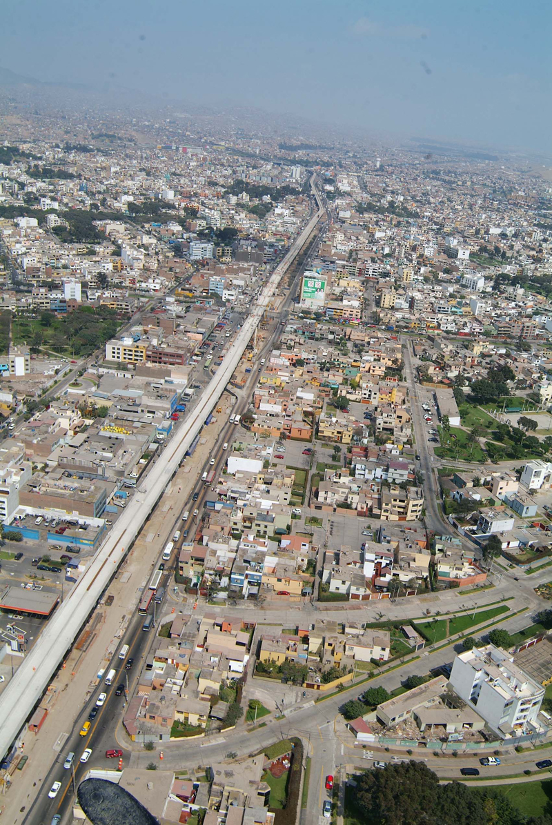 Son 400 las columnas que sostendrán el viaducto elevado que cruzará la ciudad desde el distrito de Villa El Salvador, en el sur este, hasta el centro de la ciudad, desde donde se tiene prevista su continuación hasta el distrito de San Juan de Lurigancho en el sector noreste de la capital.