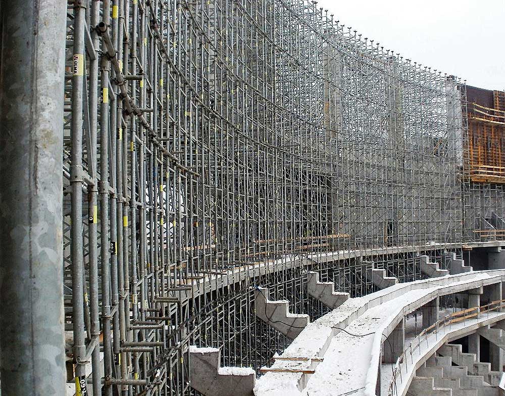 La altura de la fachada ha llegado hasta los 27 m, y la altura desde la cancha de juego a la cubierta, 41 m. La estructura del soporte de la cubierta, con un vano de 130 m, se ha construido por un enorme anillo montado sobre 40 pilares de hormigón armado.